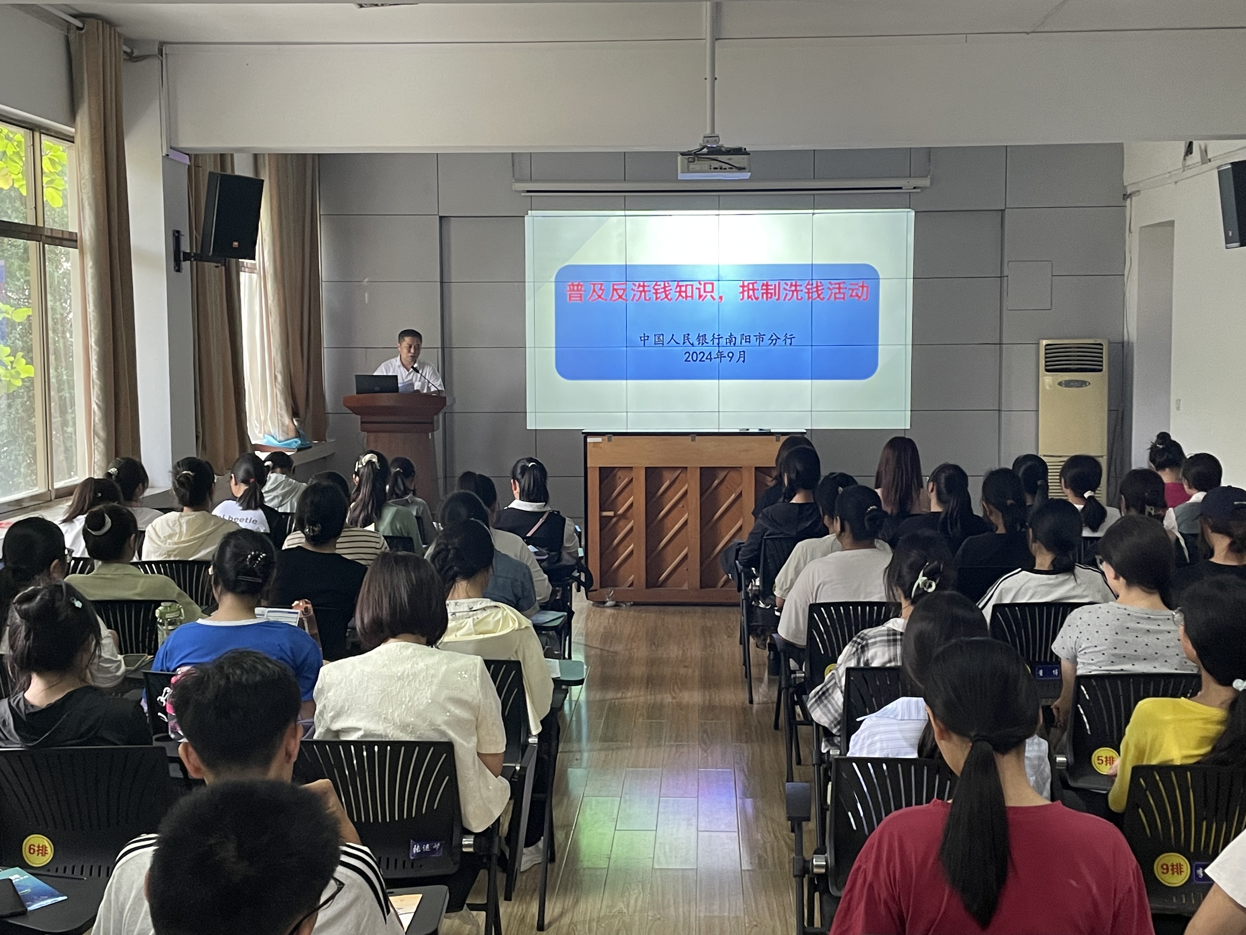 王冷)9月10日下午,中国人民银行南阳市分行联合南阳市检察院、中国民生银行南阳分行来校开展“护航开学季 反洗钱祝你行”主题反诈、反洗钱知识进课堂普法宣传活动。