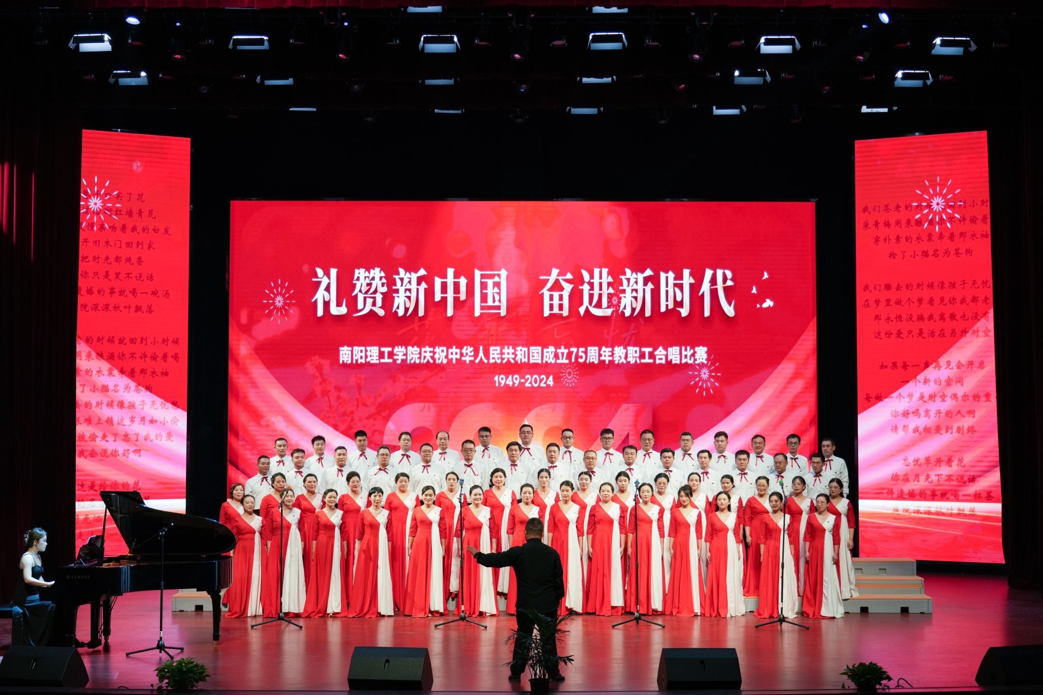陈海洋)9月24日,我校在东校区音乐厅举行庆祝中华人民共和国成立75周年教职工合唱比赛。教职工们欢聚一堂,用歌声唱响对祖国的热爱,为新中国75周年华诞献礼。全体在家校领导出席活动。