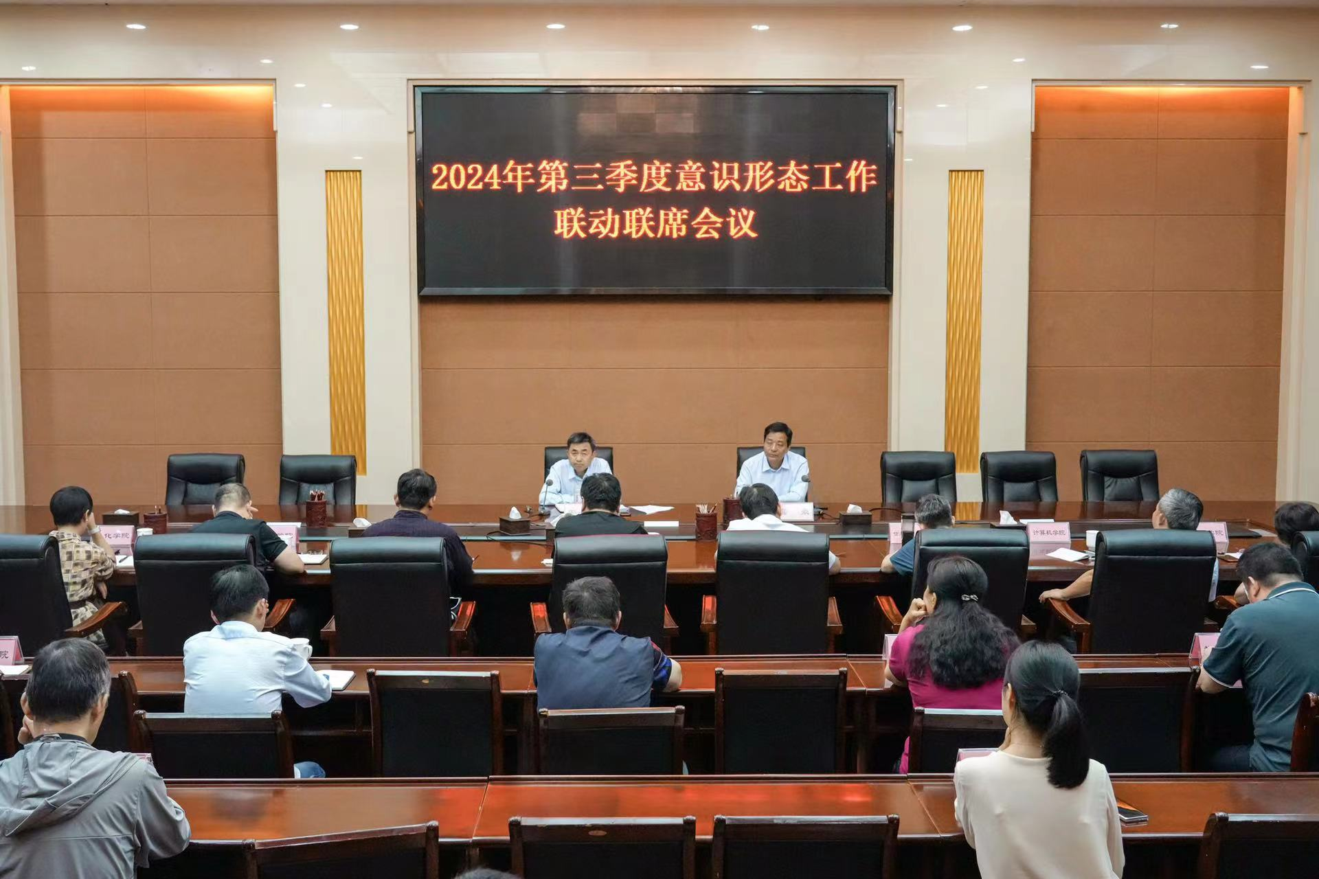 任寰)9月27日下午,我校在会议中心召开2024年第三季度意识形态工作联动联席会议,会商研判学校意识形态领域形势,交流做法、部署工作,校党委书记安士伟主持会议并讲话。