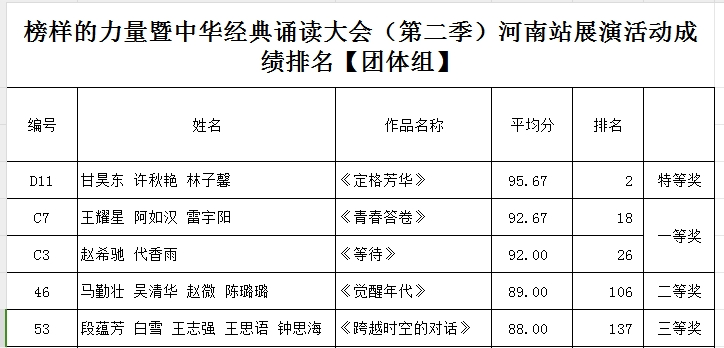 尹卓然)10月20日,由中共河南省委网信办、河南省总工会、团省委、中央电视总台央广网联合举办的“榜样的力量暨中华经典诵读大会”河南站展演在郑州工商学院落下帷幕。