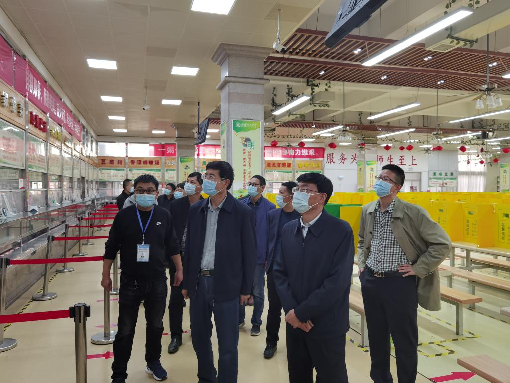 在考察物资后,督查小组一行来到西北校区学苑餐厅,了解在疫情防控下学生的就餐情况,对防控责任落实情况和菜品价格表示关心。张伟表示,我校食品安全工作落实到位。蔬菜进入食堂前对外包装进行消毒,经过抽样检测之后方可取用,学生用餐后及时对餐厅进行消毒。
