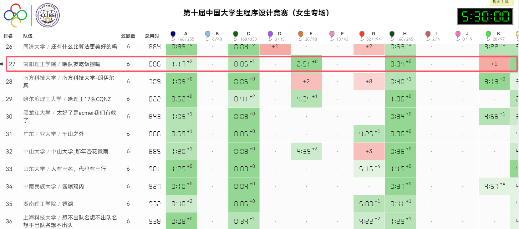 陈可)11月11日,2024年中国大学生程序设计竞赛女生专场成绩揭晓,我校获得两枚银牌、两枚铜牌,学校排名全国高校第27位。