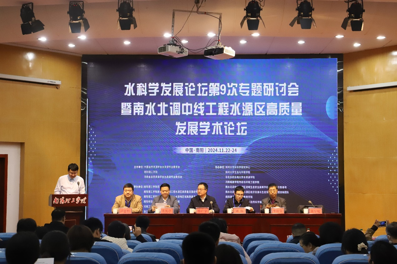 陈丽)11月22日-24日,恰逢南水北调中线工程通水十周年之际,一场聚焦水科学发展的高端论坛在南阳理工学院隆重召开。会议以“新质生产力与南水北调中线水源区高质量发展”为主题,吸引来自省内外的200余名专家学者齐聚一堂。南阳理工学院副校长蔡广宇、水利部规划司处长刘伟、中国自然资源学会水资源专业委员会主任左其亭分别致辞,开幕式由我校校长助理常军乾主持。