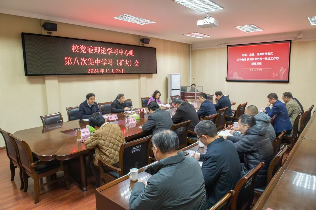 王小婉)11月28日下午,校党委书记安士伟主持校党委理论学习中心组2024年第八次集中学习(扩大)会,深入学习领会习近平总书记关于做好新时代党的统一战线工作的重要思想,学习“两个结合”的重大意义,学习习近平文化思想的基本精神、基本内容、基本要求。校党委理论学习中心组学习成员,相关部门负责同志参加。
