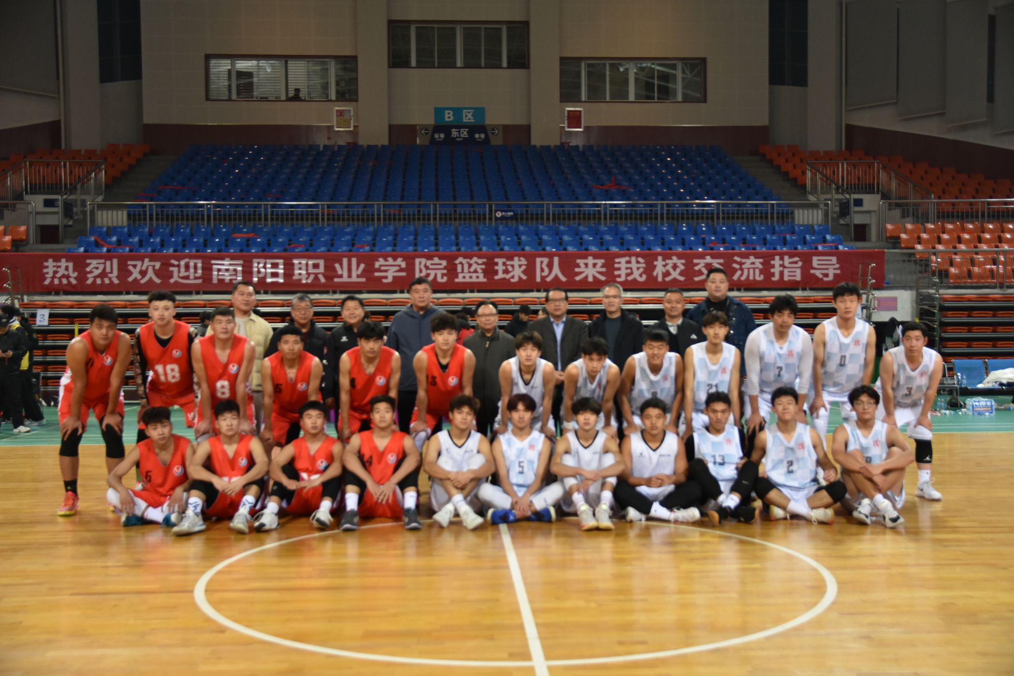 本网讯(特约记者/徐驰)12月6日,南阳职业学院执行董事樊宁和校党委副书记、校长郭建生一行带领党政办公室和体育学院师生来校比赛