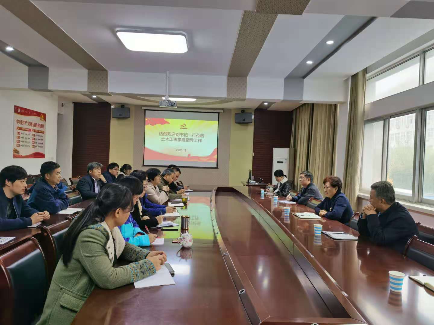 本网讯(特约记者孙恰)11月17日上午,校党委书记刘荣英到土木工程学院,就党建与思想政治工作、“十四五”规划等进行专题调研,校纪委书记、监察专员许建辉及党政办、宣传部等相关同志陪同。土木工程学院领导班子成员、科级干部、骨干教师等参加会议。