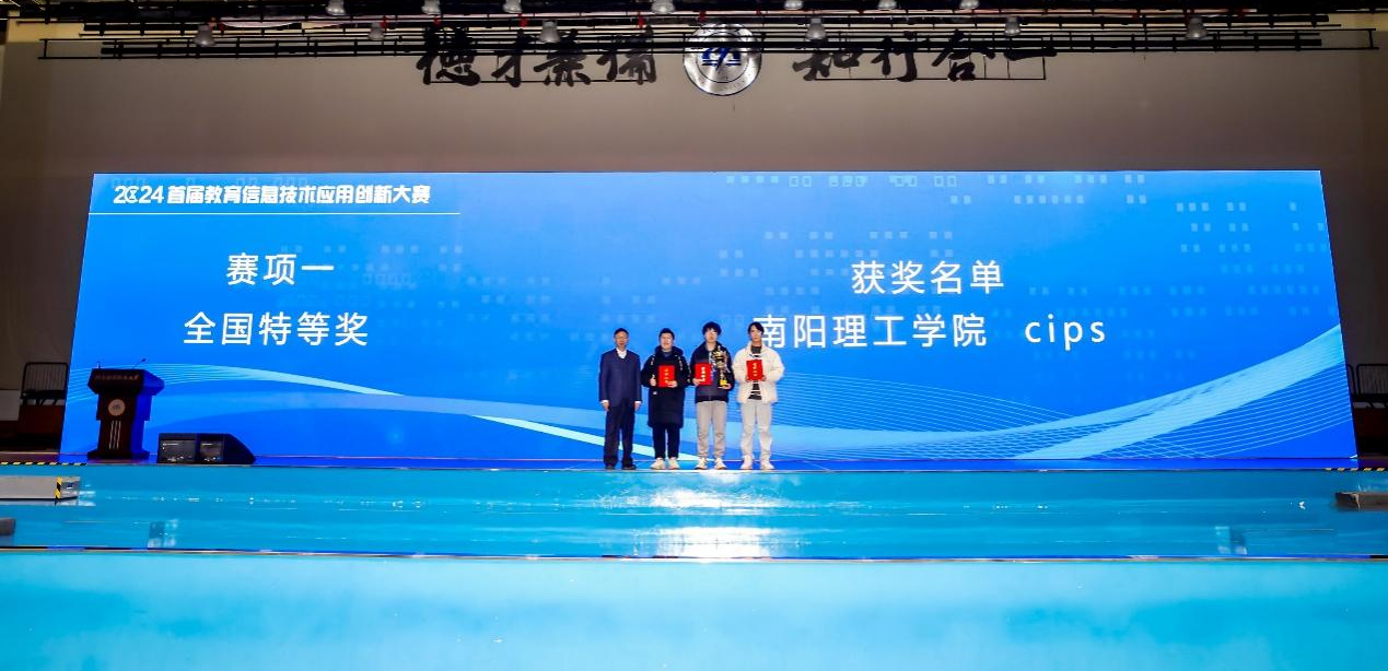 古宸豪)12月15日,由中国教育技术协会主办的2024年首届教育信息技术应用创新大赛线下总决赛在北京圆满落幕。南阳理工学院CIPS战队荣获赛项一全国唯一一项特等奖及华中、华南区域一等奖,并斩获1万元奖金。