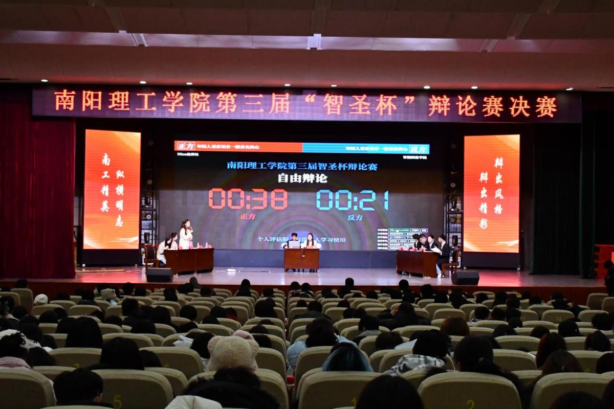 赵一龙)12月13日,南阳理工学院第三届“智圣杯”辩论赛决赛在西北校区毕业大厅举行。各学院600余名师生到场观看比赛。