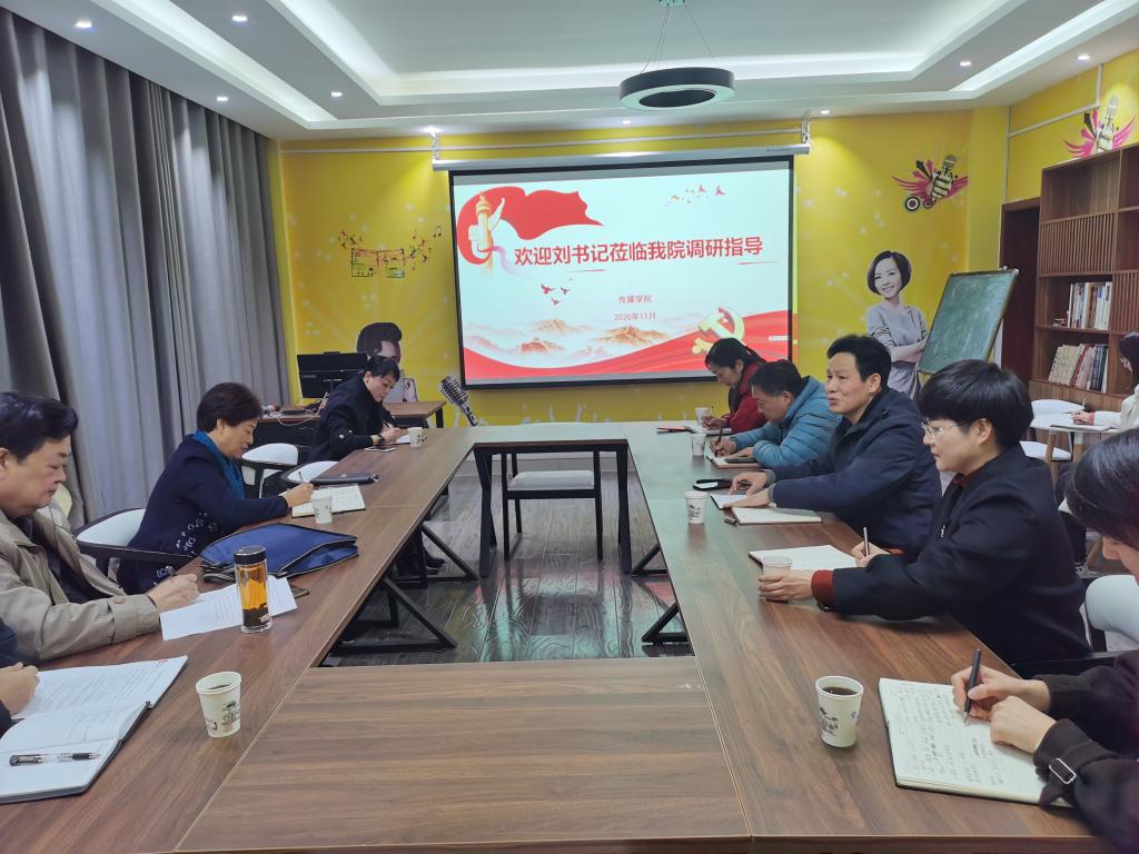 刘荣英对传媒学院党建工作取得的成绩及下一步工作思路给予充分肯定,并就学院班子建设、党建品牌创建和人才培养等问题提出四点要求。一是要坚持高标准高要求,发挥好党建对学院事业发展的引领作用,以“十四五”规划制定为契机,进一步理清学院的发展目标和发展路径。二是抓好学科专业建设,凝练办学特色,打造专业品牌,在“精新细特”上下功夫,不断增强传媒学院社会影响力,提升传媒学院知名度和美誉度。三是把握人才需求特点,加大融合办学探索,在立足服务地方经济上,多培养“会学习、勤实践,能吃苦、敢创新、用得上、留得住”的“适销对路”型人才。四是加强班子建设,要以政治建设为统领,以能力建设为重点,做好干部梯队规划,打造业精实干的干部队伍,为学院的可持续发展提供有力组织保障。