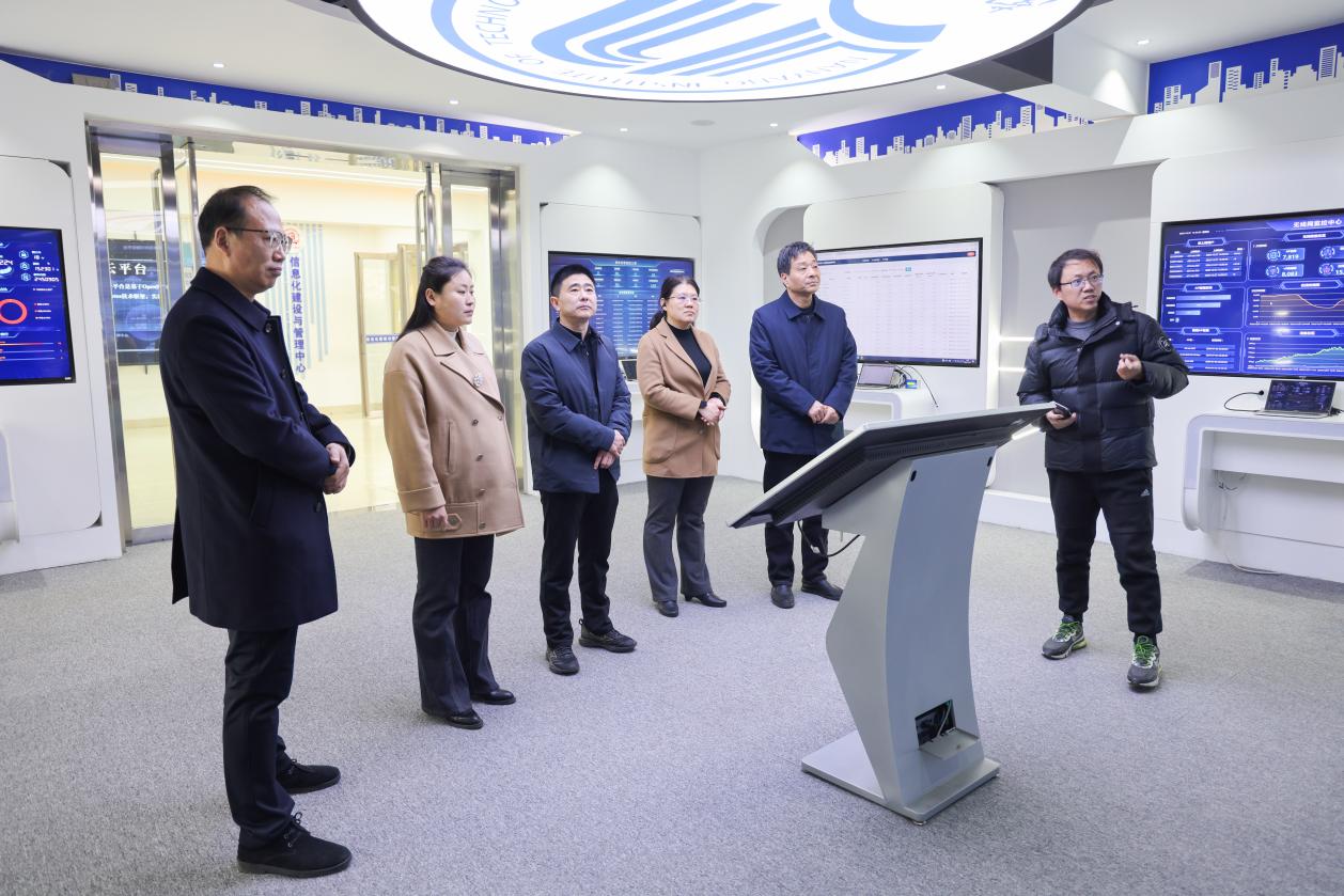 在学校智慧校园展厅,王胜昔详细了解学校智慧校园建设最新成果,特别是在网络安全和数据治理等方面所取得的显著成效。在大学生科技园,王胜昔实地参观学生创新创业项目展示区,了解学校在学生学科专业竞赛和创新创业方面的工作开展情况。