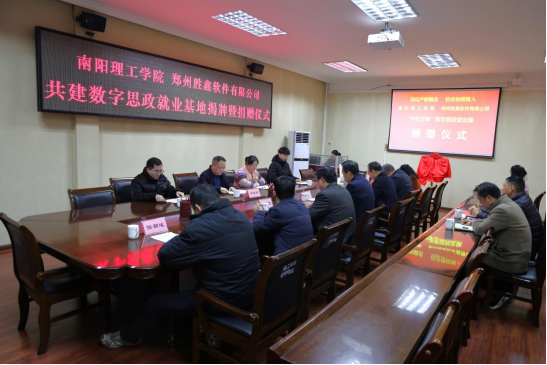韩芳)12月30日上午,我校在第一会议室举行南阳理工学院郑州胜鑫软件有限公司共建数字思政就业基地揭牌暨捐赠仪式。
