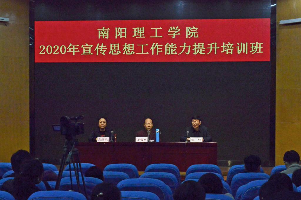 本网讯(记者/刘庚 学者记者/陶思恒)12月10日上午,河南广播电视台高级记者、高级编辑丁长举应邀来校做2020年宣传思想工作能力提升培训班第一讲。各单位从事宣传思想工作的相关负责同志和学生代表参加培训班。校党委副书记、工会主席张伟出席培训班并讲话。培训会由党委委员、党委宣传部部长高芳放主持。