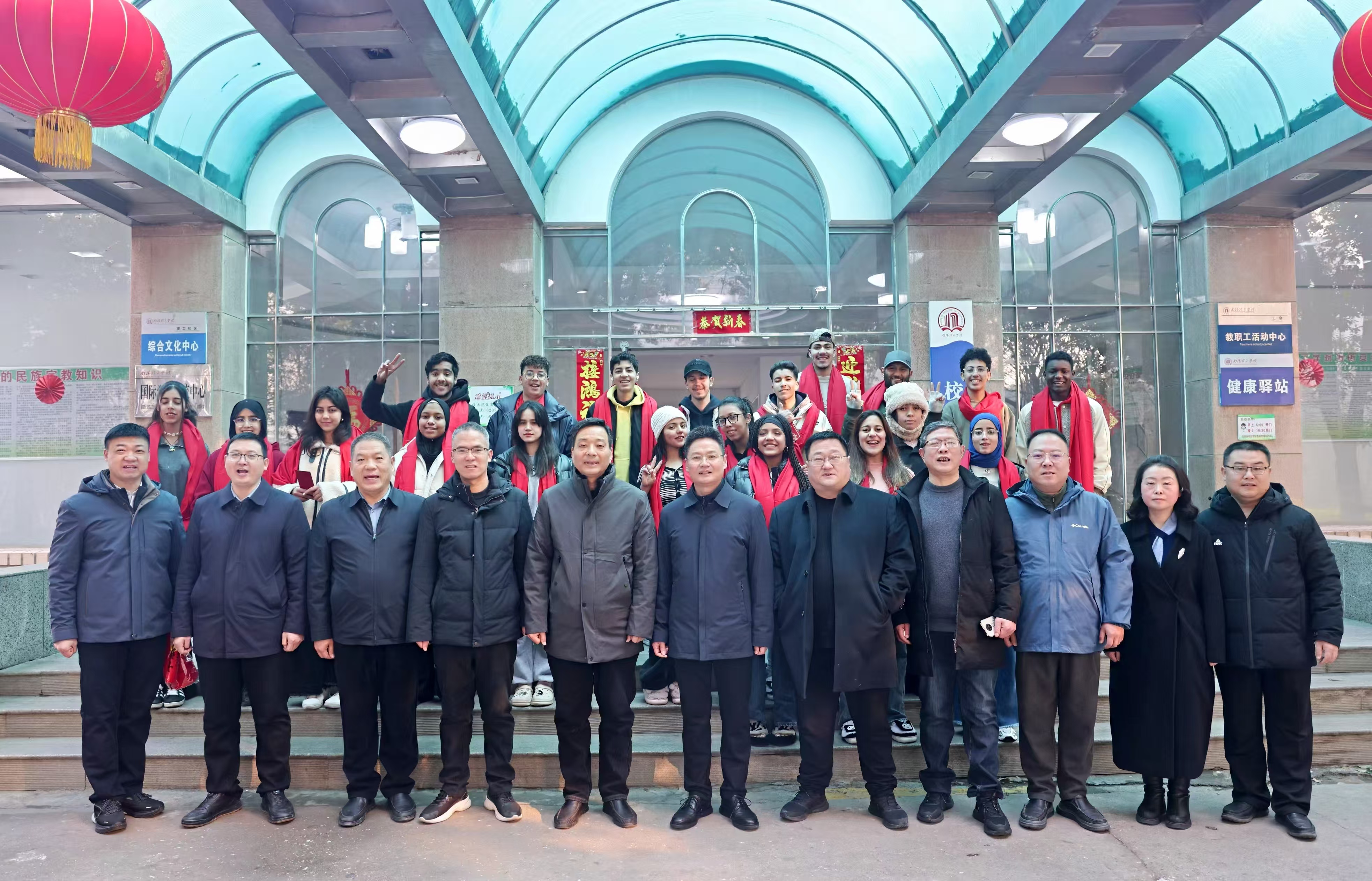 在青年公寓,校领导与留学生代表亲切交流,关切询问同学们春节期间的生活安排,并向他们介绍了中国春节的传统习俗和文化内涵,鼓励大家要充分利用假期时间充实自己,合理安排学习和生活,进一步了解中国文化,增进国际友谊。