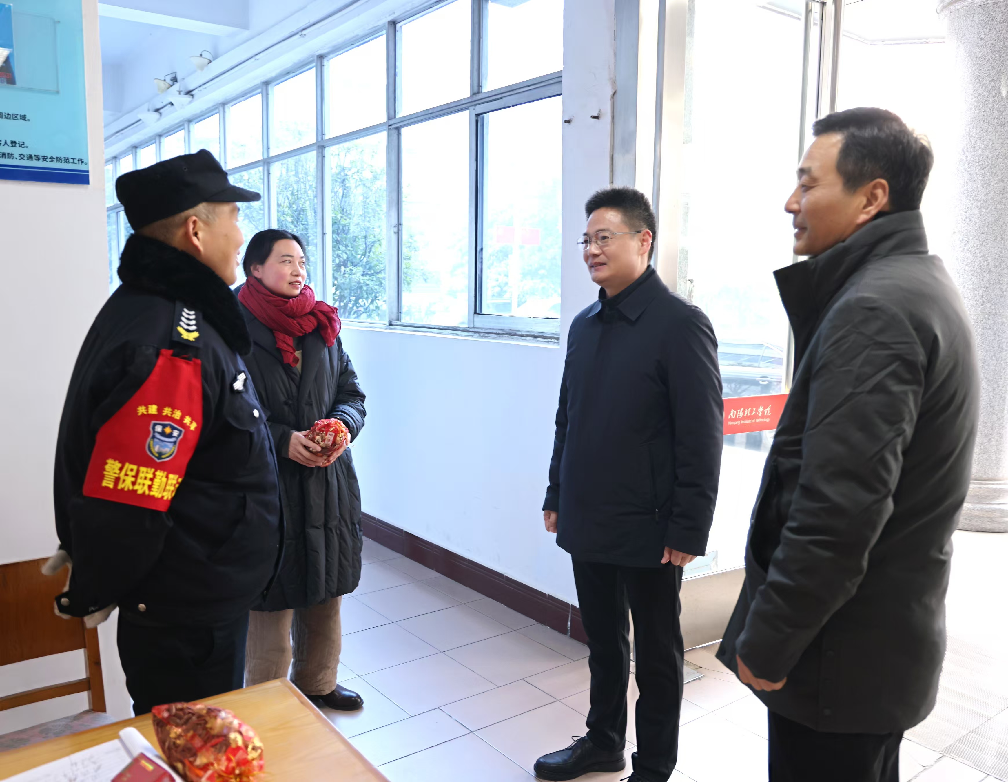 郝好山一行先后深入到行政楼保卫值班室、北大门执勤点、监控指挥中心、水电科、青年公寓等地,详细了解春节期间各岗位的值班安排和保障措施,认真查看各类安保设备和水电供应的运行状态,对坚守在一线的教职工表示衷心感谢,并送上节日慰问品。