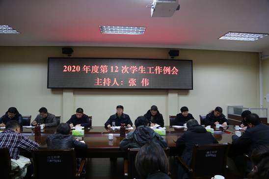 本网讯(特约记者/胡玲 张启鑫)12月21日下午,校党委副书记、工会主席张伟主持召开我校2020年度第12次学生工作例会。学生处、团委、心理健康教育中心、保卫处、后勤服务中心、校医院等单位主要负责人,各教学院党委副书记参加会议。