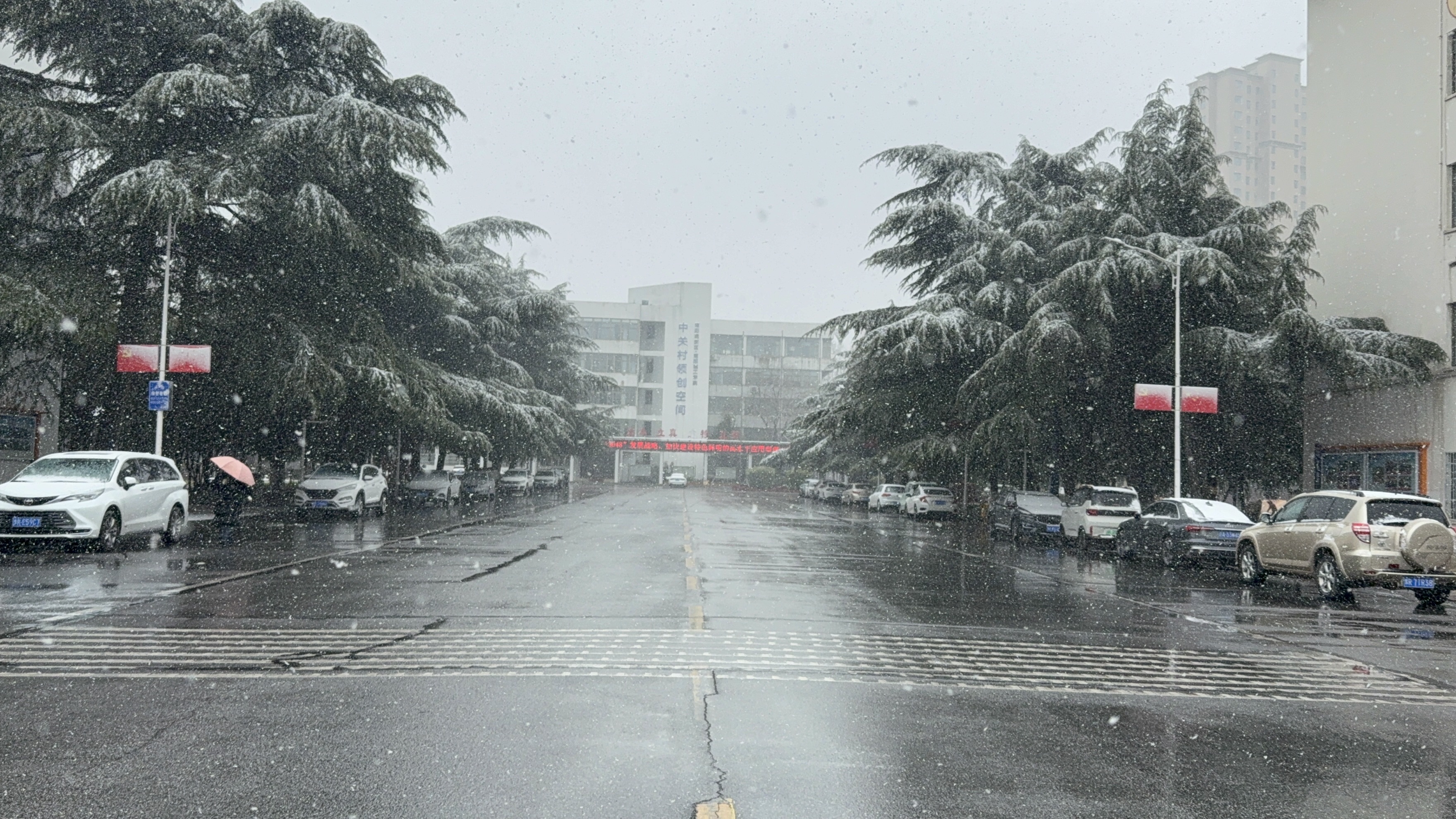 胡秋阳)近日,由于南下强冷空气和暖湿气流交汇,河南绝大部分地区形成降雪。2025年的第一场雪也因此在南工校园里与同学们相遇。