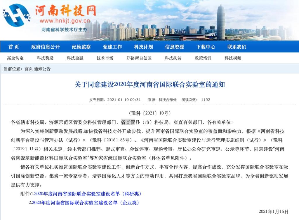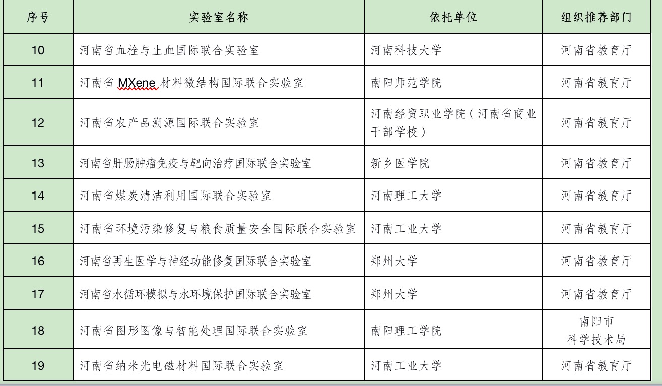 本网讯(特约记者 段新东)近日,河南省科技厅发布《关于同意建设2020年度河南省国际联合实验室的通知》(豫科〔2021〕10号),我校申报的“河南省图形图像与智能处理国际联合实验室”获批建设,这是我校继“河南省张仲景方药与免疫调节重点实验室”、“河南省工业微生物资源和发酵技术重点实验室”后的又一新突破,标志着我校正式成为河南省图形图像与智能处理研究领域的领军者。