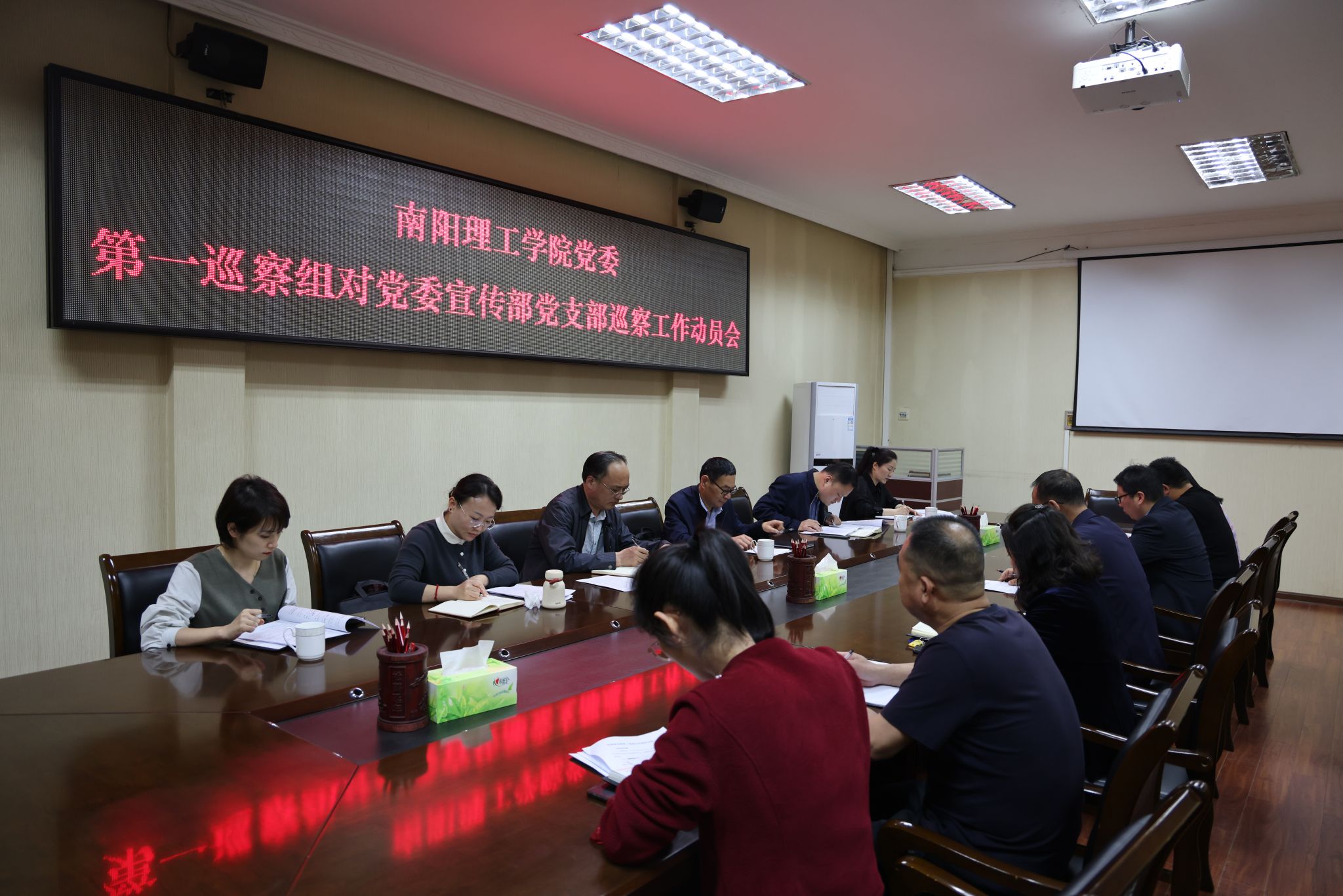 任寰 李萌)4月9日,校党委第一巡察组在第一会议室召开对党委宣传部党支部和党政办公室党支部巡察工作动员会。党委巡察办负责同志、第一巡察组全体成员、党委宣传部、