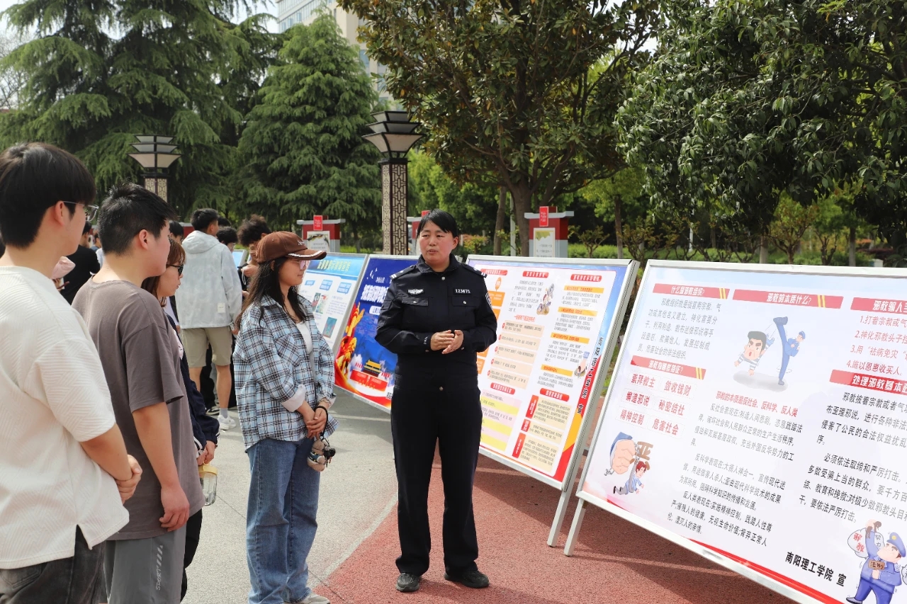 王冷)4月15日下午,我校在东南校区法治文化广场举办“全民国家安全教育 走深走实十周年”集中宣传活动。南阳市公安局示范区分局王春园警官一行、党委保卫工作部、依法治校办公室及各职能部门相关人员和土木工程学院师生代表参加活动。
