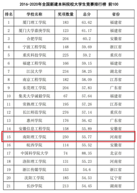 本网讯(特约记者/赵刚彬 张启鑫)近日,中国高等教育学会发布2020全国普通高校大学生竞赛排行榜,我校以250项奖项数量、55.77总分名列2016-2020年全国普通高校大学生竞赛排行榜(本科)第244名,河南省第8名,全国新建本科院校大学生竞赛排行榜第15名,河南省第1名,连续五轮进入全国前300强。