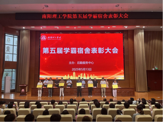 /李骏)5月13日下午,我校在第三报告厅召开第五届“学霸宿舍”表彰大会。副校长黄金书出席,学生处、张仲景国医国药学院、土木工程学院、生物与化学工程学院、后勤服务中心等单位相关负责人,“学霸宿舍”成员及学生代表参加会议。