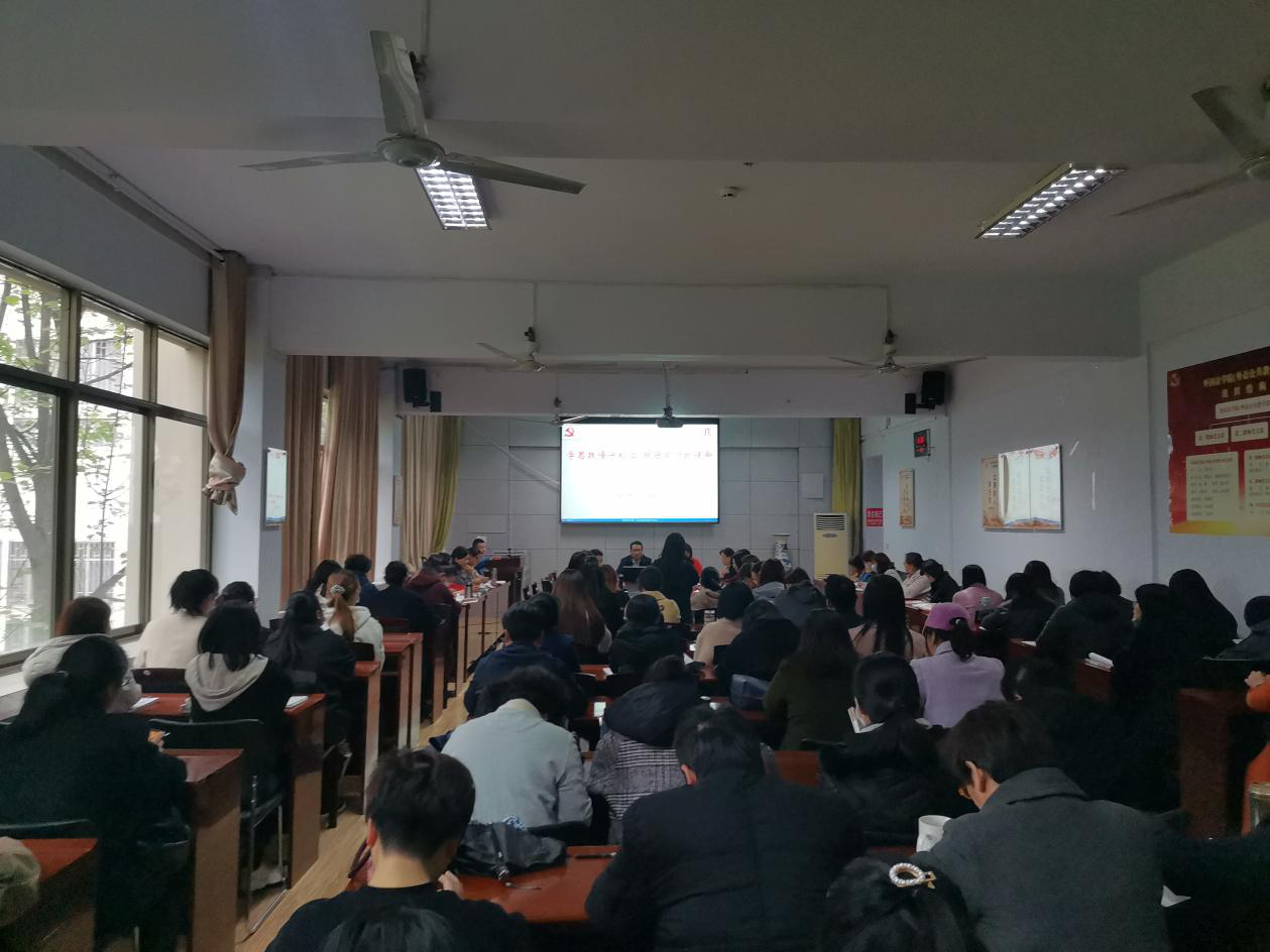 本网讯(特约记者/来蔓均)4月2日下午,副校长葛晨光为外国语学院师生开展“学思践悟守初心 砥砺前行担使命”专题党课。外国语学院领导班子、全体教职工及学生党员代表参加。