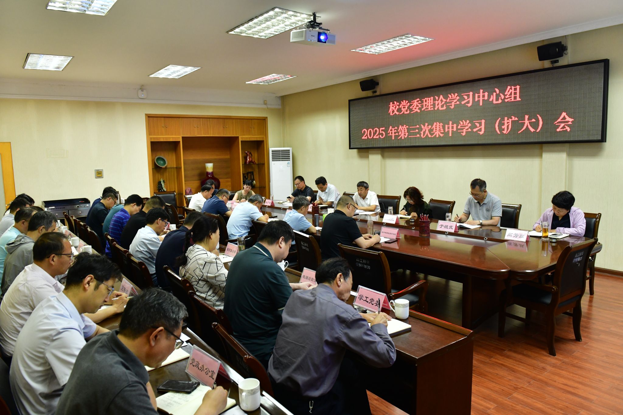 王小婉)5月29日下午,校党委书记安士伟主持召开校党委理论学习中心组2025年第三次集中学习(扩大)会,传达学习习近平总书记在河南考察时的重要讲话精神,深入学习中央八项规定及其实施细则精神。校党委理论学习中心组成员,学习教育专班成员和各直属党组织书记参加。
