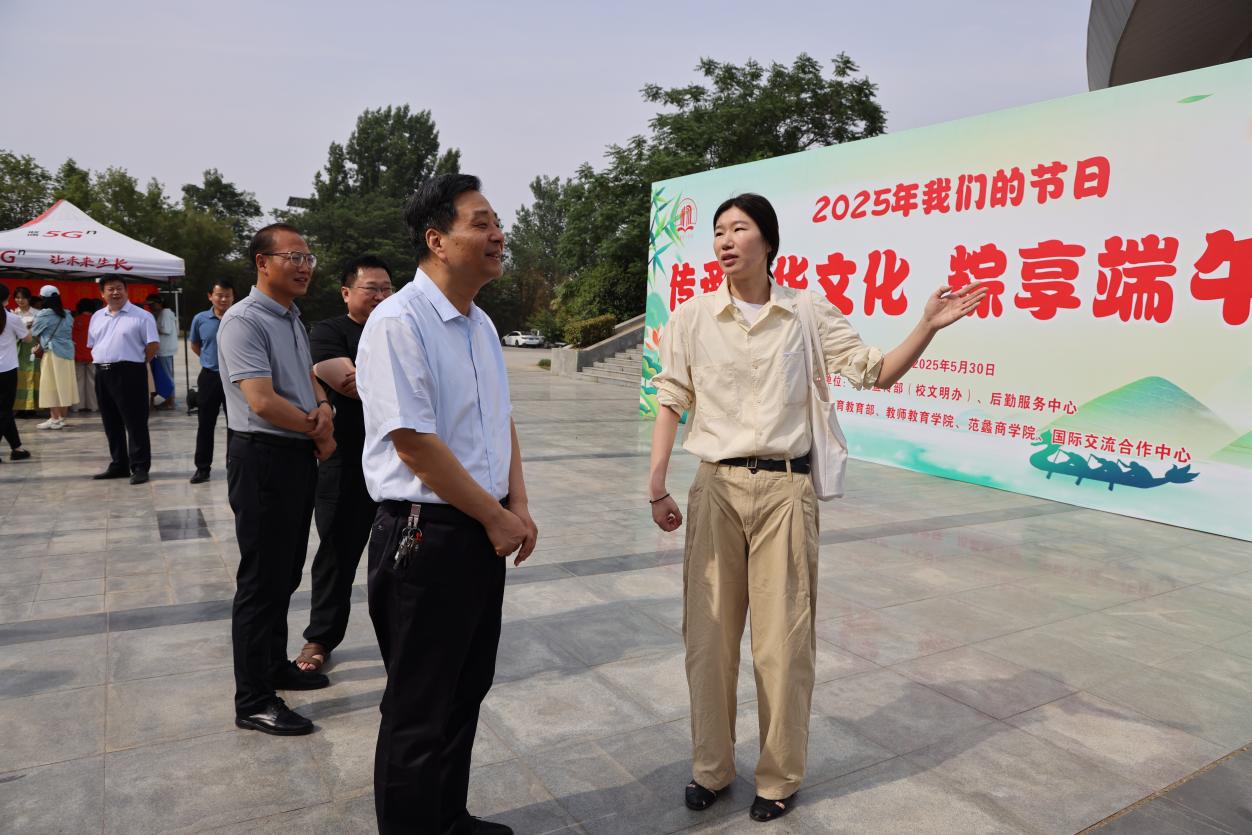 胡秋阳 武诗婷)艾草清芬漫卷处,粽香情浓满校园。5月30日上午,南阳理工学院东南校区体育馆东侧广场、西北校区范蠡广场、东校区大学生活动中心广场人潮涌动。由校党委宣传部携手后勤服务中心精心打造的“我们的节日·端午”主题文化盛宴在此拉开帷幕,校党委副书记、工会主席董豪,范蠡商学院、教师教育学院、体育教学部、国际交流合作中心、校团委主要负责同志与千余名师生共赴传统文化之约。