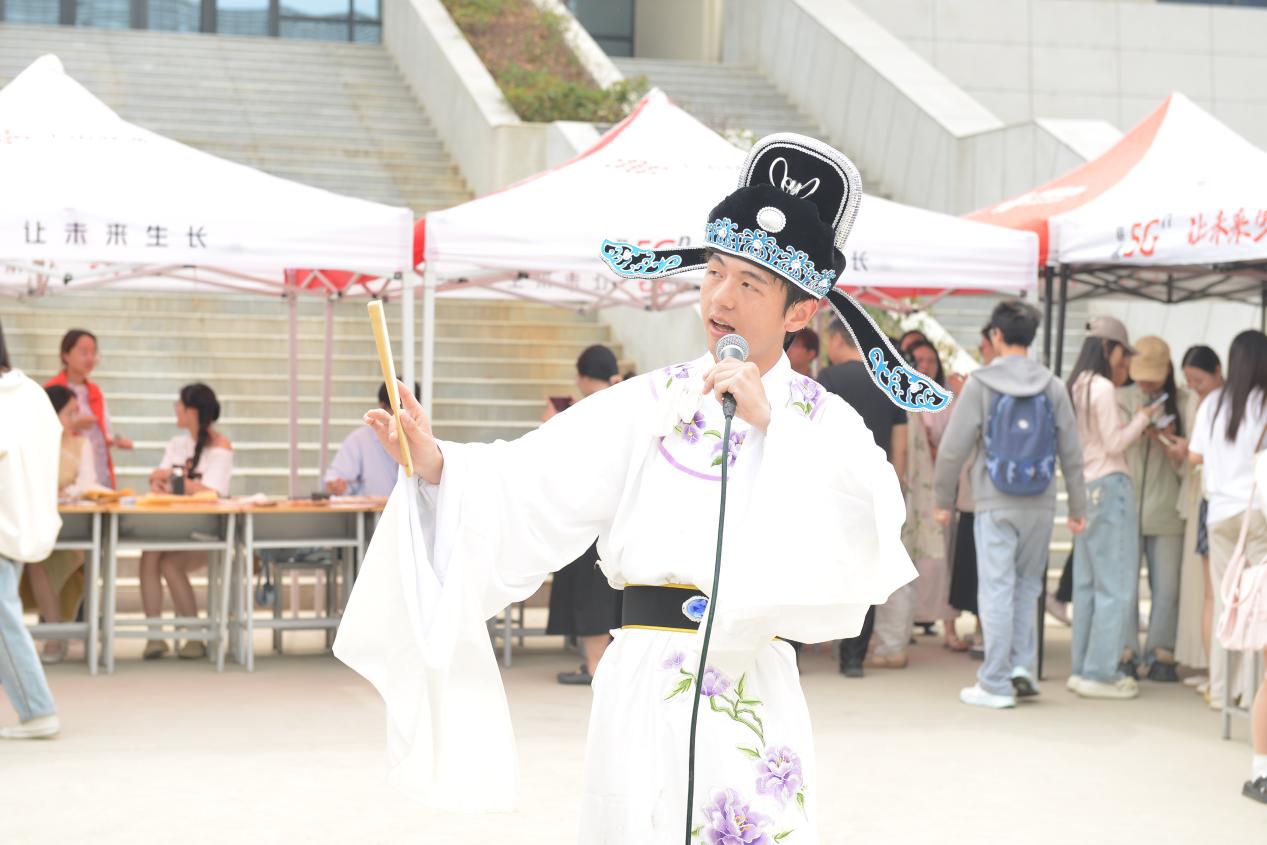 同时,文艺表演与体育竞技也同步展开。学生社团带来古筝、越剧等精彩节目,赢得阵阵掌声;射箭场区,师生们拉弓搭箭,在竞技中体验古代“射礼”文化的魅力。现场气氛十分活跃,笑声不断。