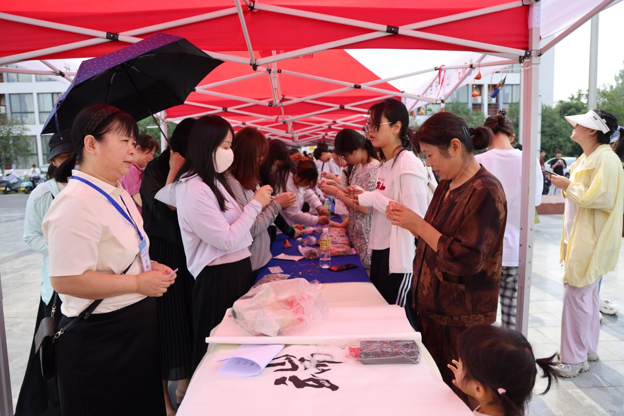 活动还设有才艺展示区,书画创作台前,师生们以“端午”“爱国”为主题创作作品,充分弘扬传统文化的魅力;悬挂的谜题卡纸吸引众多师生驻足,大家在趣味互动中感受传统文化智慧。