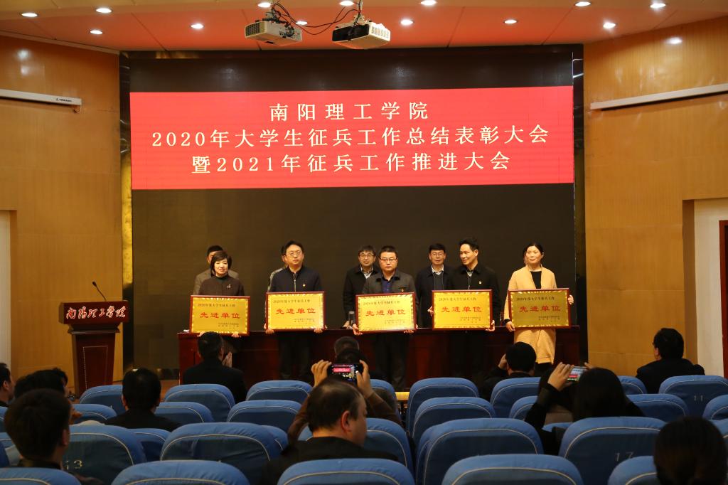 大会全面总结我校2020年的国防教育和大学生征兵工作,宣读了《南阳理工学院关于表彰2020年度大学生征兵工作先进单位和先进个人的决定》,与会领导向获得“2020 年度大学生征兵工作先进单位和个人”颁发奖牌和荣誉证书。各教学院递交《南阳理工学院2021年大学生征兵工作目标责任书》。(校对/肖邓华 审核/高芳放)