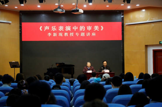 李新现结合自己的专业学习经历,为师生做《声乐表演中的审美》专题讲座,从如何建立正确的声音概念和舞台表演的审美要求两方面进行讲解,要求大家在声乐表演中不断进取,精益求精,并现场指导师生进行演唱实践。