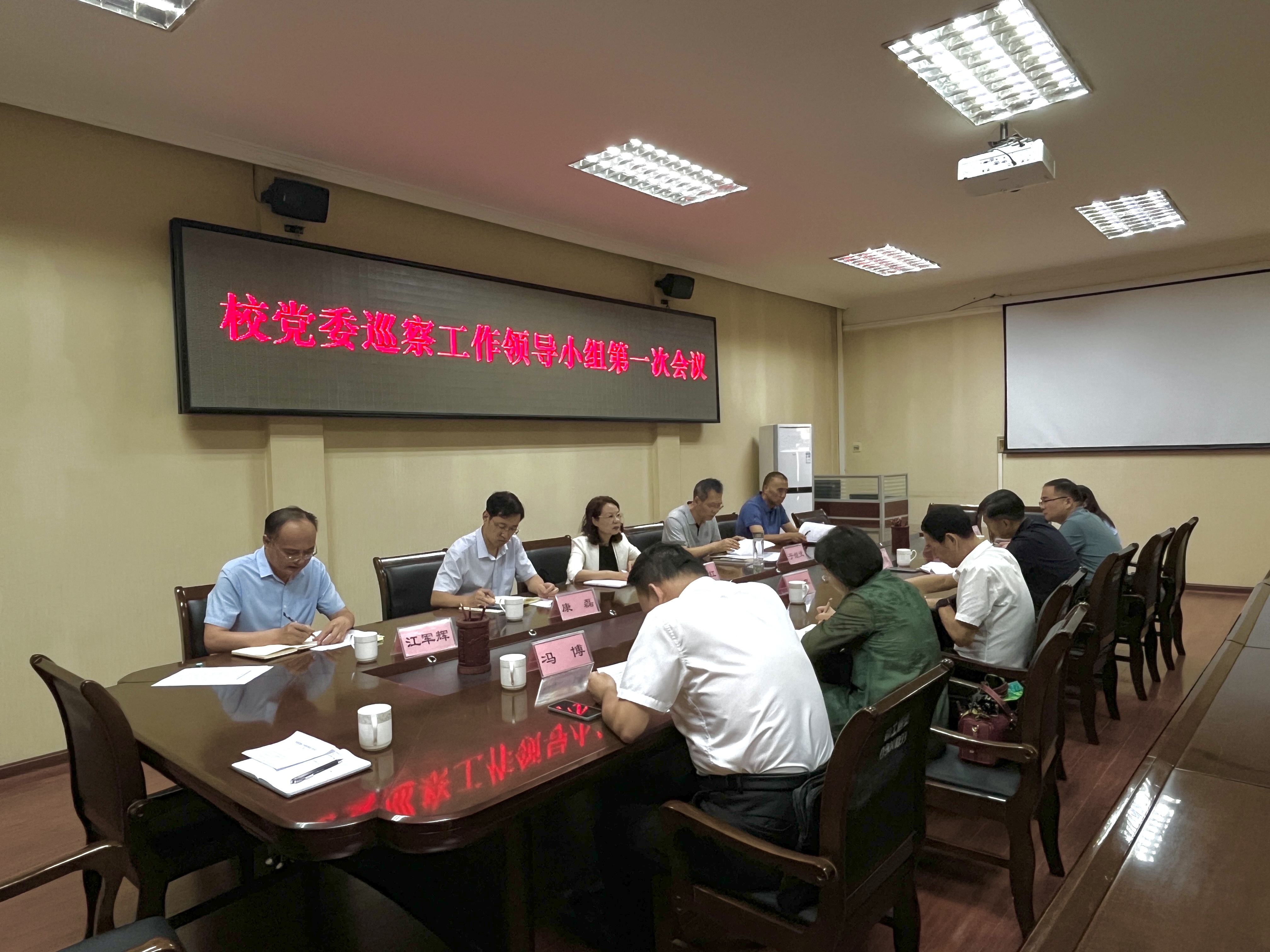 郭争)6月12日,我校党委巡察工作领导小组召开第一次会议,听取并审议党委巡察组关于四届党委第一轮巡察工作详情汇报,并对下一步工作进行安排部署。巡察工作领导小组成员出席会议,第一轮巡察相关负责人参加会议。会议由校党委副书记张爱红主持。