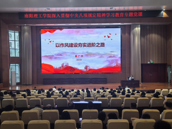 王潇菡)为推进深入贯彻中央八项规定精神学习教育,6月25日下午在第三报告厅,副校长蔡广宇以“以作风建设夯实进阶之路”为题,为人事处、教务处、招生就业处、教学评估与质量监控中心、教师教学发展中心、外国语学院、智能制造学院师生党员讲授专题党课。