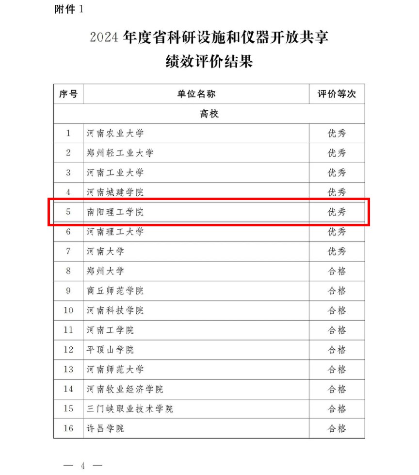 邹军燕)8月28日,河南省科技厅、财政厅、教育厅联合印发《关于公布2024年度省科研设施和仪器开放共享绩效评价结果的通知》,我校再度获评“优秀”等次,居高校组第五名。