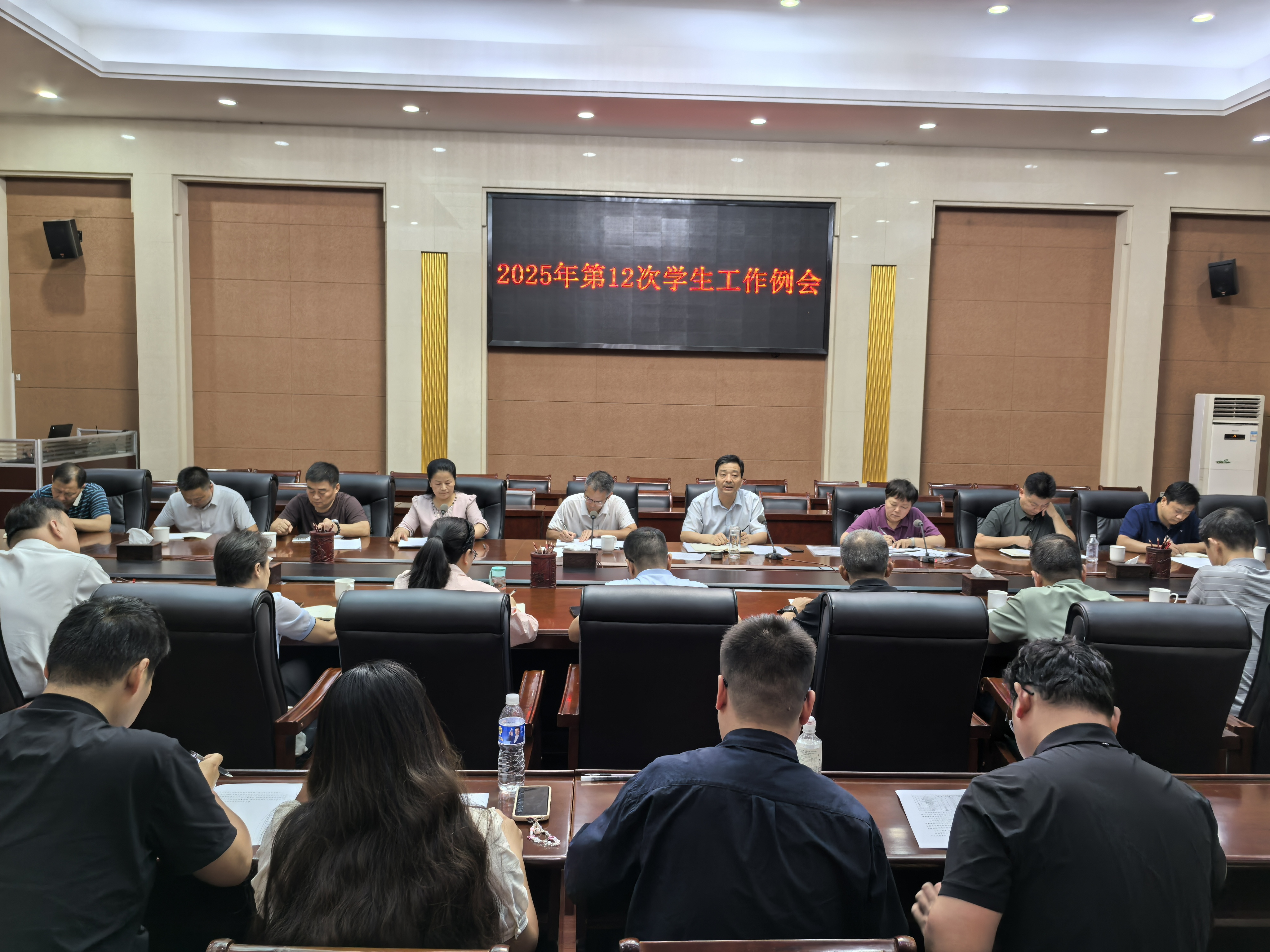 王吉春)9月15日下午,校党委副书记、工会主席董豪主持召开我校2025年第12次学生工作例会,学生处、团委、保卫处、心理健康教育中心、后勤服务中心、依法治校办公室、校医院等部门负责人,各教学院党委副书记、学工办主任参加会议。