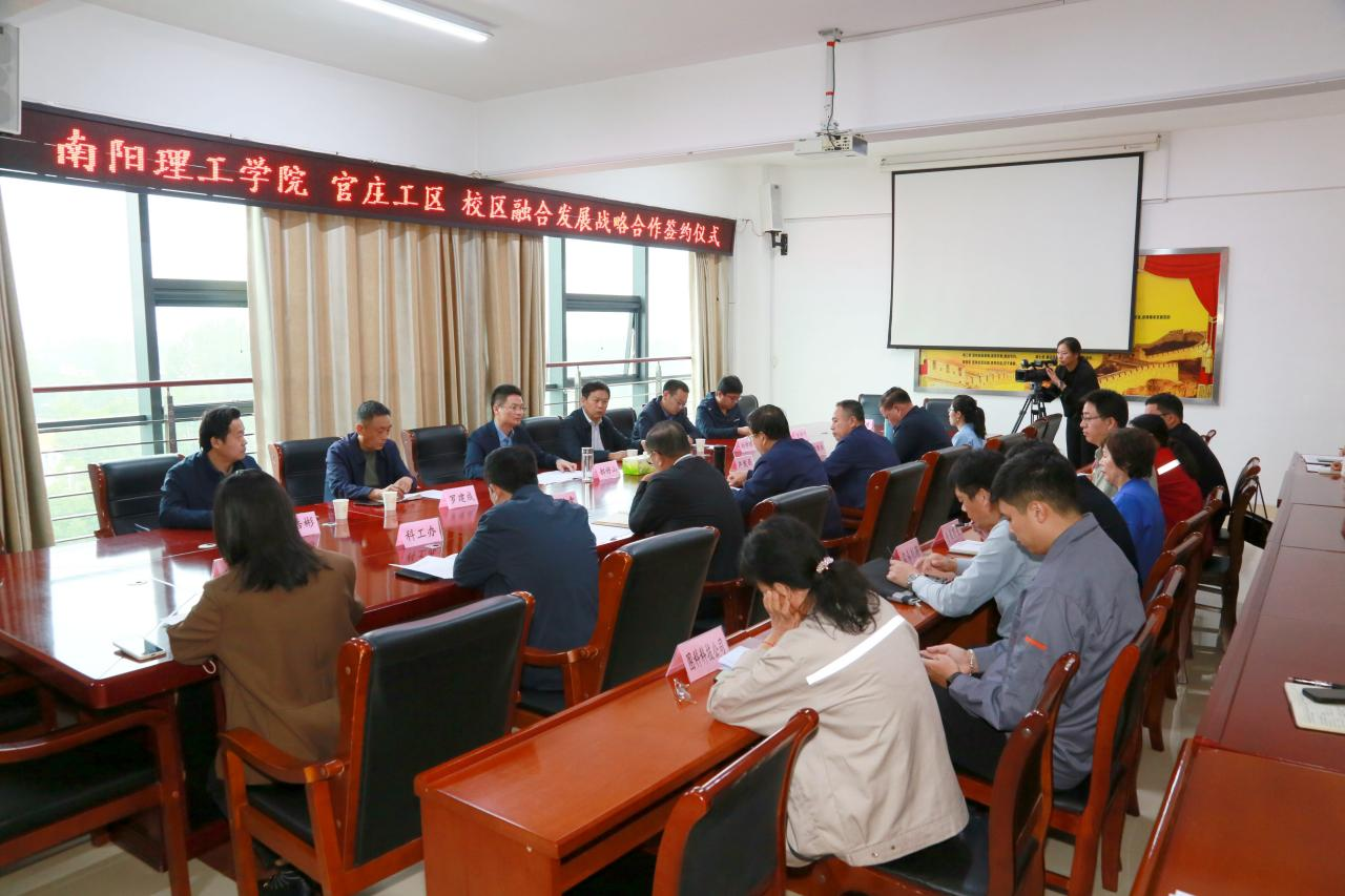 符浩彬)9月18日,南阳理工学院与官庄工区举行校区融合发展战略合作协议签约仪式。此次签约标志着双方将在产学研深度融合、科技成果转化、战略咨询服务、人才培养引进等关键领域开展深度协作,推动校地协同创新迈入更深层次、全方位的合作新阶段。校长郝好山,官庄工区党工委书记高增伟等出席仪式。
