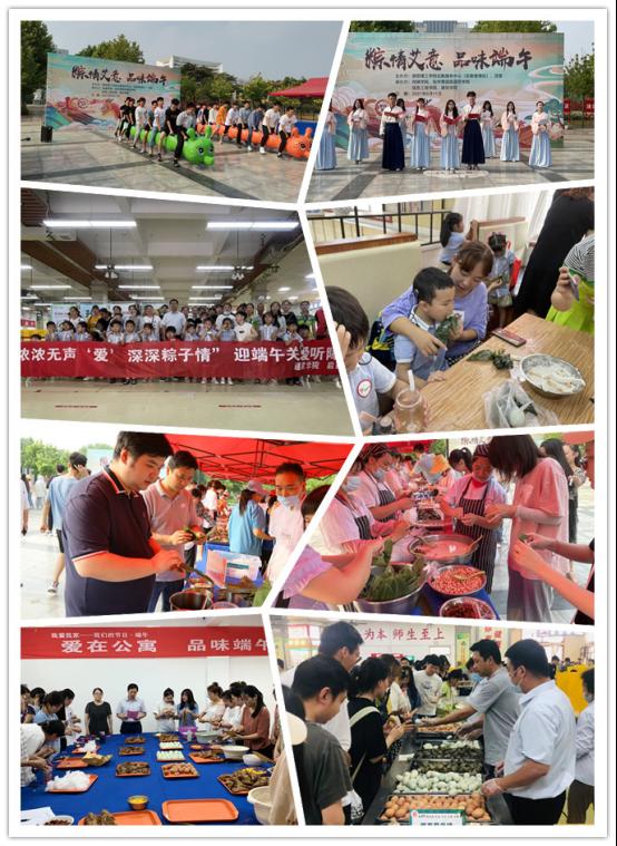 此次活动主会场设在齐贤广场,分会场设在两校区学生餐厅和各学生公寓楼。在主会场,开展有昔玦汉韵社的古风楚韵舞以及诗歌朗诵、“百年‘船'承,天生出‘粽'”党史知识竞答、现场制作驱蚊香囊、旱地赛龙舟、包粽子等活动。在各分会场,师生积极参与包粽子、做香囊、画彩蛋等丰富多彩的活动,在欢度端午的同时也感受到传统文化的魅力;张仲景国医国药学院开展“旱地赛龙舟”活动;建筑学院联合后勤服务中心邀请南阳市聋儿康复中心听障儿童在学苑餐厅一食堂开展“浓浓无声‘爱’ 深深粽子情”活动,听障儿童及其家长体验手工制作粽子并品尝美食,共度佳节;各学生公寓楼开展“爱在公寓 品味端午”活动,组织学生包粽子、制香囊并免费品尝端午美食;后勤服务中心在学生餐厅开展“校园美食文化节﹒安康端午”系列活动,邀请师生午餐免费品尝粽子、鸡蛋、大蒜等传统节日美食,在学生餐厅开展“粽享民俗味 发扬节约风”活动,结合“光盘行动”开展抽奖活动,赠送参与人员传统饰品五色线、艾草香包和校园美食文化节系列书签。