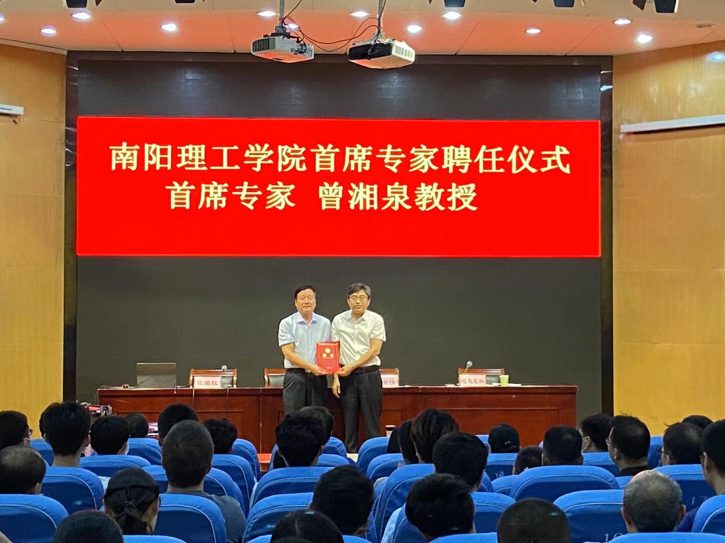 会上,校长安士伟为教育部“长江学者”特聘教授曾湘泉教授颁发南阳理工学院首席专家聘书。