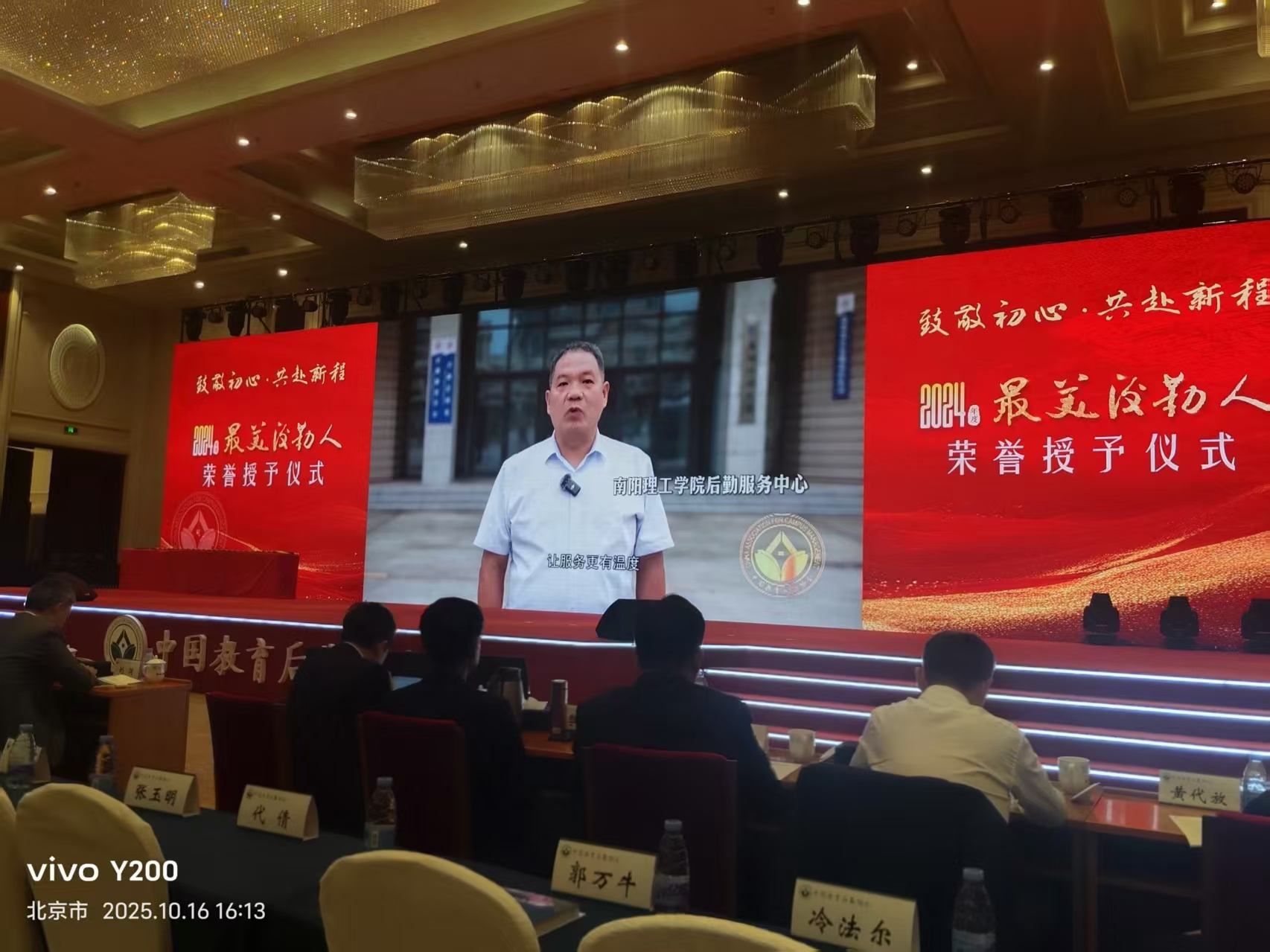 /李勇)近日,由中国教育后勤协会主办的“教育后勤现代化治理与高质量发展论坛暨全国教育后勤系统‘2024年度最美后勤人’荣誉授予仪式”在北京举行。南阳理工学院后勤服务中心凭借出色的服务保障能力与显著的节能降耗成效,获评全国教育后勤系统“2024年度最美后勤团体”称号,并成为全省仅有两所获此殊荣的高校之一。