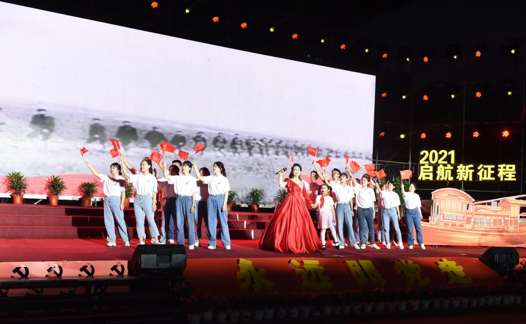 本网讯(记者/肖邓华 鲁静薇)党旗如画,展现光辉历程;岁月如歌,颂唱丰功伟绩。6月25日晚,我校在西北校区田径场隆重举行庆祝中国共产党成立100周年文艺晚会。