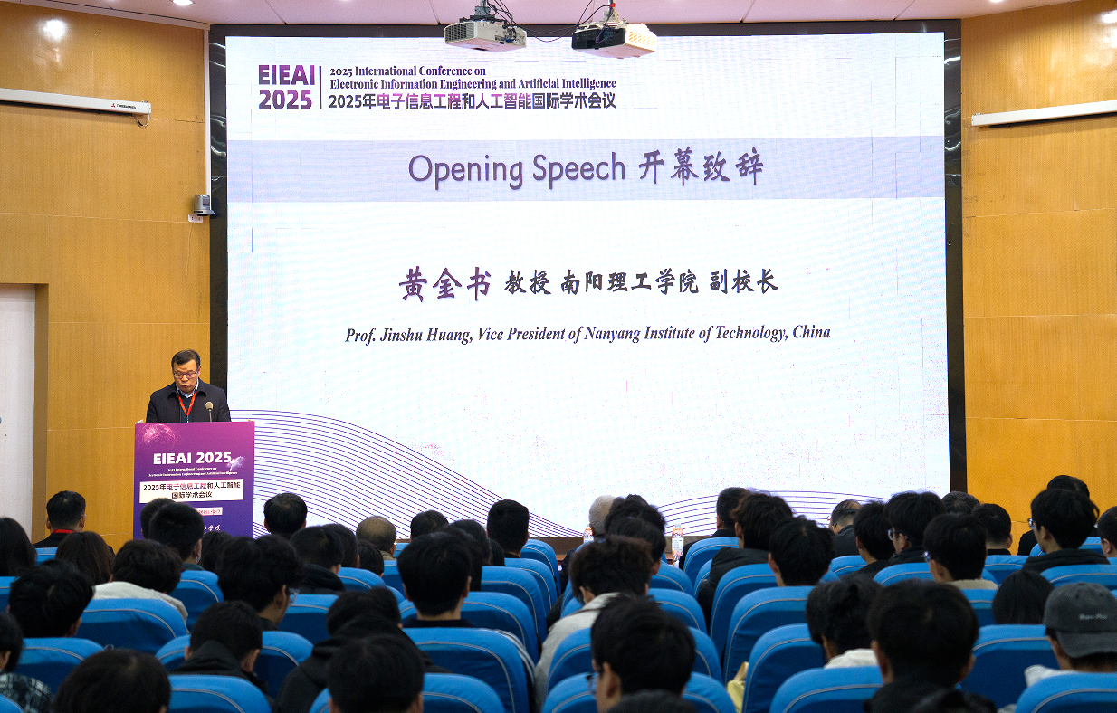 邢永锋)10月25日,2025年电子信息工程与人工智能国际学术会议(EIEAI 2025)在我校第二学术报告厅举办。会议由南阳理工学院主办,西华师范大学协办,南阳理工学院电子信息学科研究院、河南省图形图像与智能处理国际联合实验室、西班牙萨拉曼卡大学、马来西亚理工大学等单位积极参与。