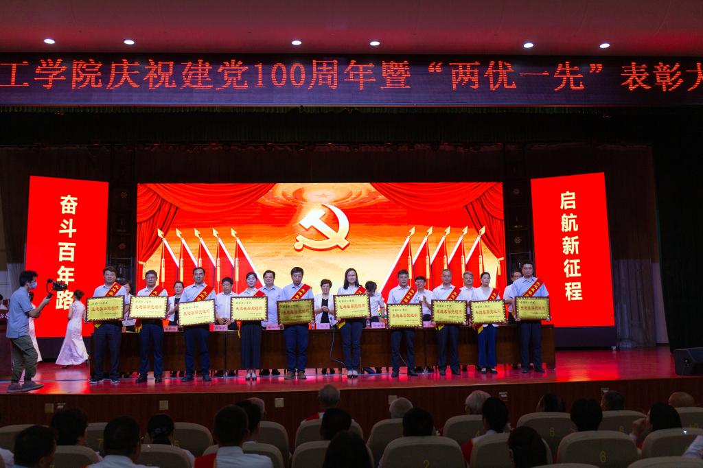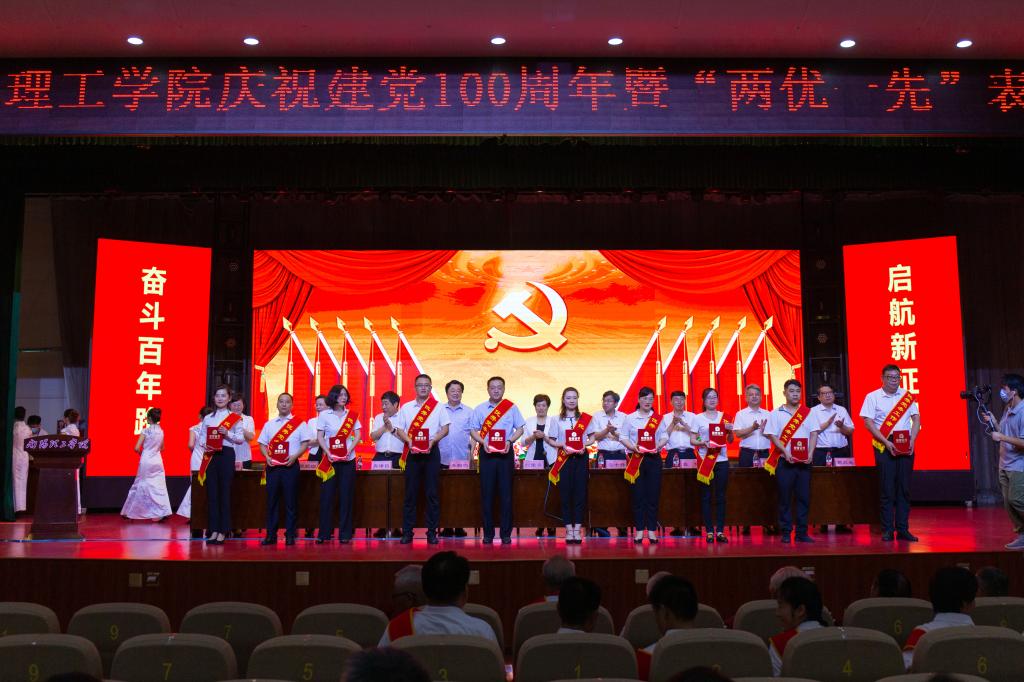 本网讯(特约记者/张坡 陈鹏)6月29日下午,我校隆重召开庆祝建党100周年暨“两优一先”表彰大会。校领导刘荣英、安士伟、秦鹏鸣、张伟、肖泽昌、许建辉、张爱红、葛晨光、王玉磊出席会议。
