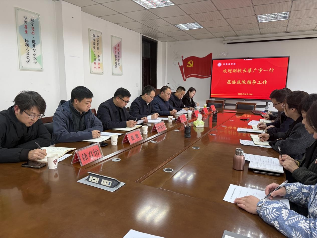 党楠)10月24日下午,副校长蔡广宇到范蠡商学院专题调研国际学生培养、管理与服务工作,教务处、国际交流合作中心、后勤管理处、传媒学院、范蠡商学院等相关部门负责人及教师代表参会。