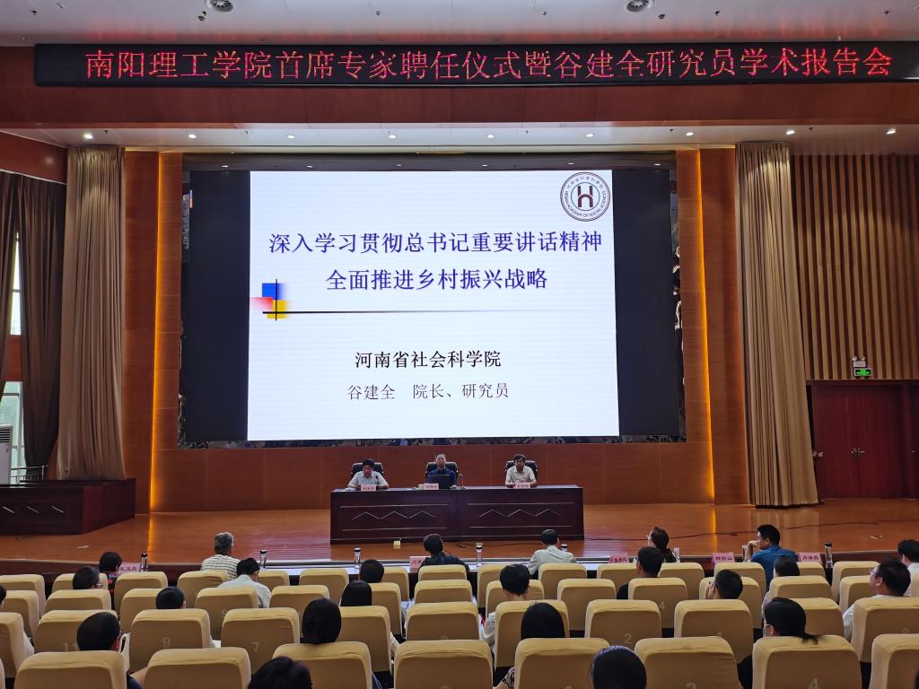 谷建全作《学习贯彻总书记重要讲话精神,实施乡村振兴战略》主题学术报告,系统介绍实施乡村振兴战略的时代背景、核心要义、前提条件和河南实施乡村振兴战略面临的形势、实践探索、主要任务、需要处理好的关系,对学校落实国家乡村振兴战略和服务南阳乡村振兴发挥重要指导作用。