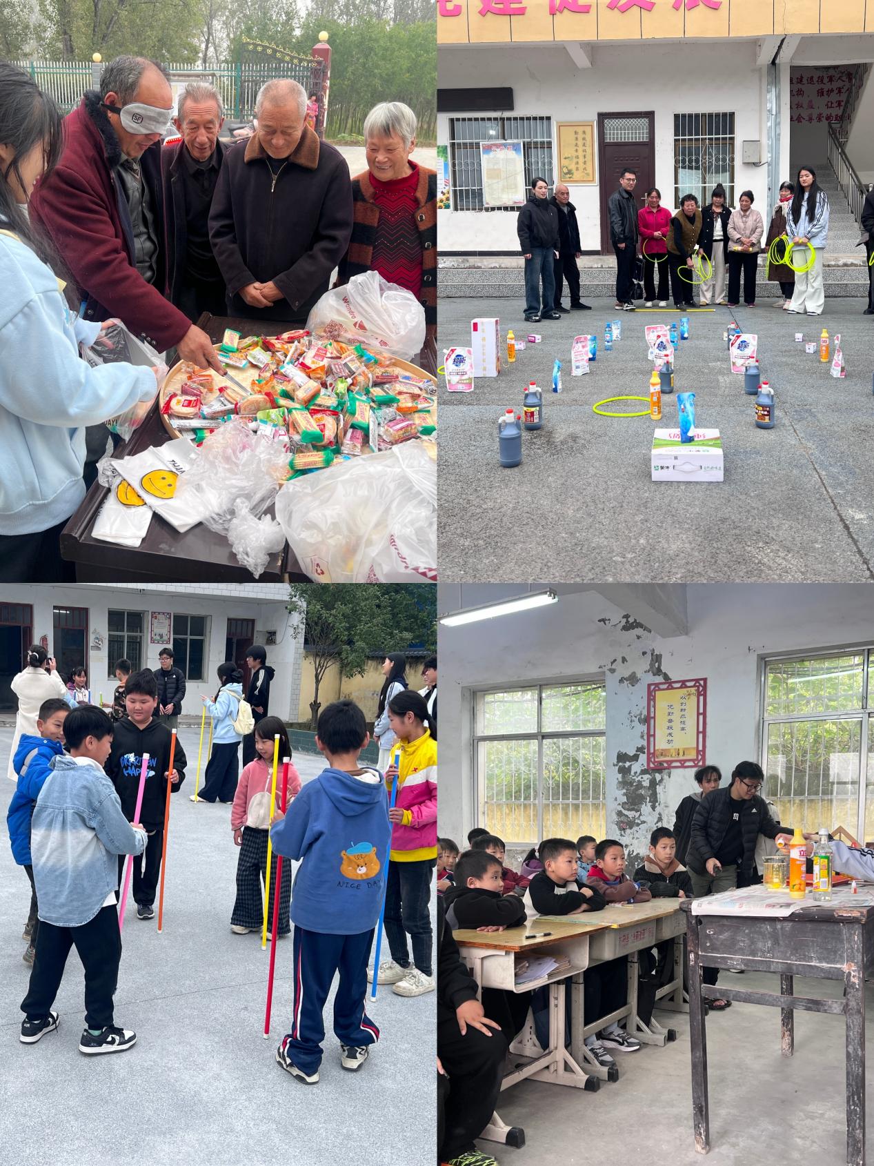 活动共有敬老互动、赋能教育、农业帮扶、校企联建四项内容。在黑石寨村村部广场,敬老互动环节组织为村里60岁以上老人提供免费理发服务,还为老人们安排了趣味游戏,并为参与者设置相应奖励,现场气氛温馨而欢乐。在黑石寨小学开展的赋能教育活动中,通过熔岩灯制作、人造雪花模拟、碘伏变色反应等安全趣味实验,为学生们带来生动有趣的科学课堂,激发孩子们对自然科学的浓厚兴趣;协作闯关游戏让孩子们在合作中收获快乐,校园里洋溢着欢声笑语。