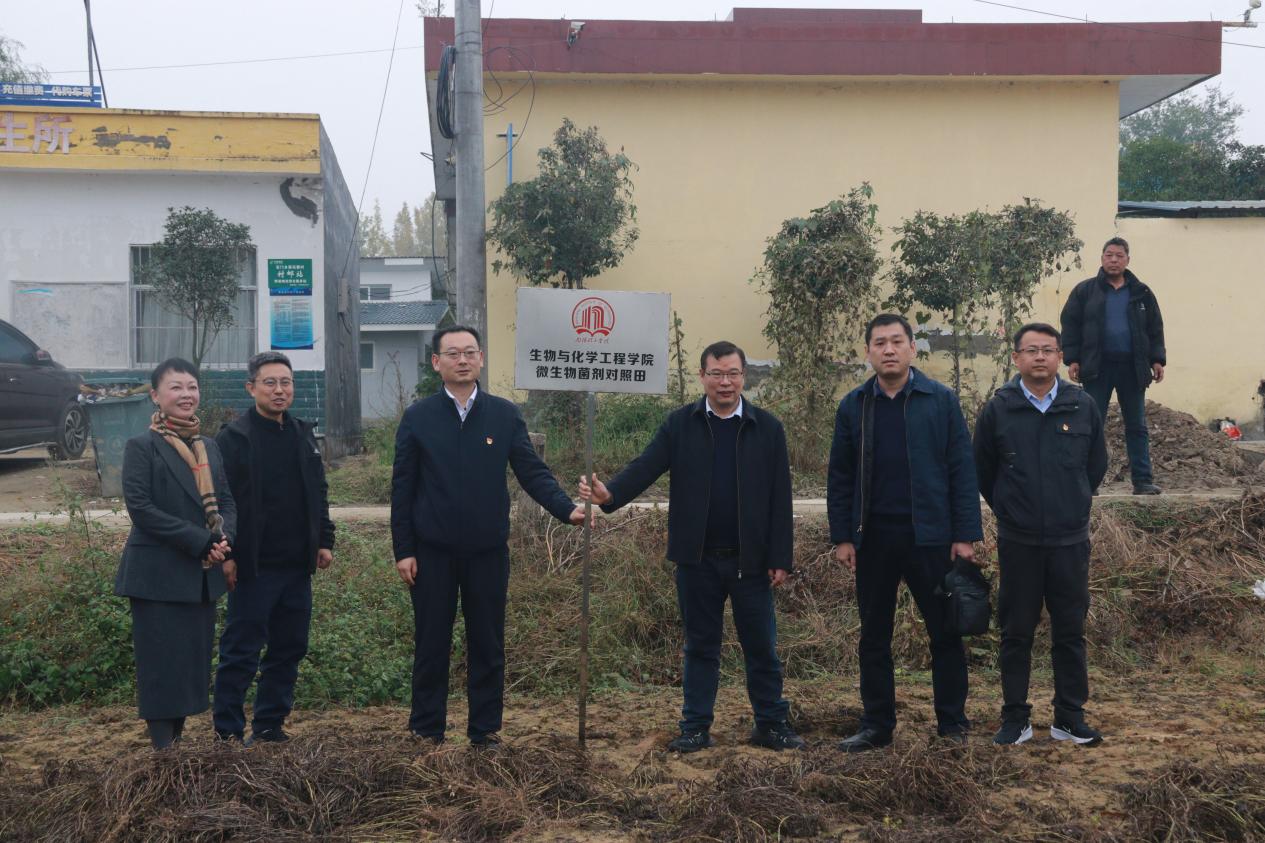 在黑石寨村试验田里,黄金书与生化学院一起为试验田揭牌。学院将持续探究微生物菌剂对当地农田土壤、作物生长的改善情况,推进绿色农业的发展。在裴庄村村委会,黄金书详细了解乡支柱产业发展及乡村教育情况,随后与师生共同参观爱诺生物科技有限公司和康信冷鲜食业有限公司,就企业产业帮扶、科技需求与人才培养等进行深入交流,提出要进一步巩固深化校企党建联盟合作机制,同谋发展,再谱新篇。
