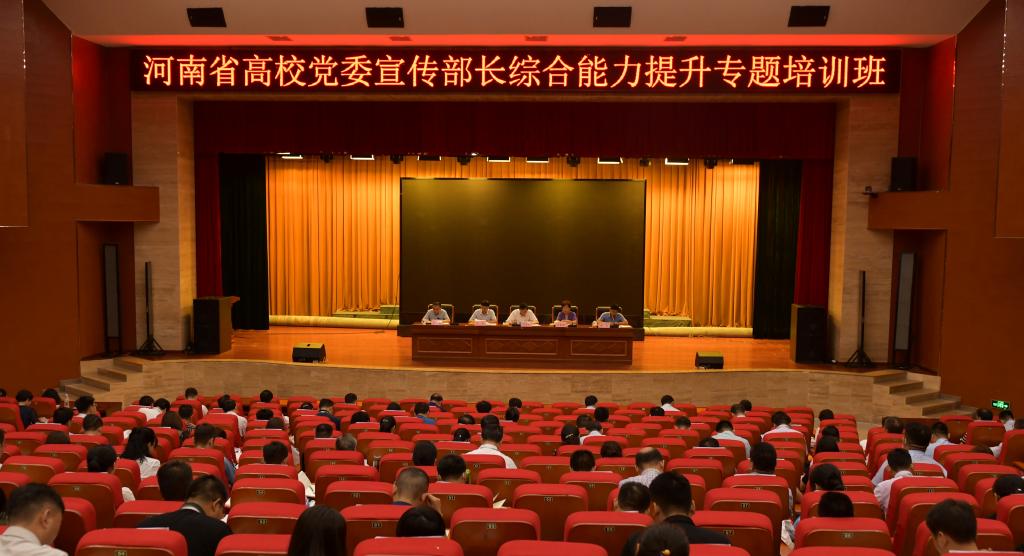 本网讯 7月18日至23日,由中共河南省委高校工委、省教育厅主办,我校承办的河南省高校宣传部长综合能力提升专题培训班在南水北调干部学院举行。19日上午,省委高校工委专职委员何秀敏,省教育厅思政处长陈凯、副处长任龙云,我校党委书记刘荣英,党委副书记、工会主席张伟出席开班仪式。河南省149所高校宣传部负责同志等参加开班仪式。