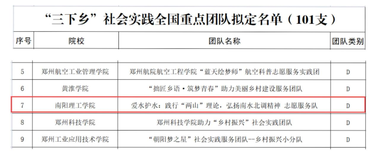 据悉,在2021年全省大中专学生志愿者暑期文化科技卫生“三下乡”社会实践活动中,经团省委在全省高校中层层遴选、推荐,最终我校范蠡商学院《爱水护水:践行“两山”理论 弘扬南水北调精神志愿服务队》成功入选团中央“三下乡”社会实践全国重点团队,张仲景国医国药学院《践行仲景思想,弘扬中医文化实践队》、计算机与软件工程学院《童心向党,强国有我实践队》、传媒学院《走进革命老区,寻找红色记忆—赴桐柏重走红色足迹实践队》3支团队成功入选团省委“三下乡”社会实践省级重点团队。(校对/鲁静薇 审核/肖邓华)