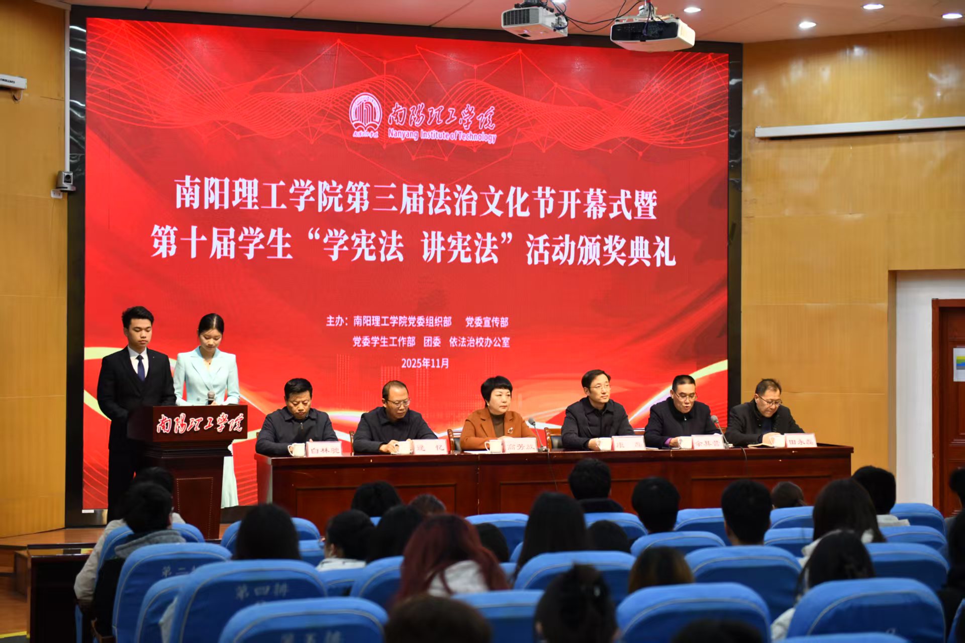 依法治校办公室主要负责人宣读《南阳理工学院第三届大学生法治文化节实施方案》。